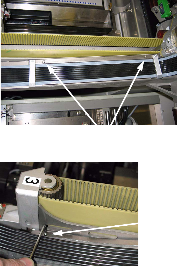 : Lösen Sie die Schraube des Kabelschlepps neben der Umlenkrolle.