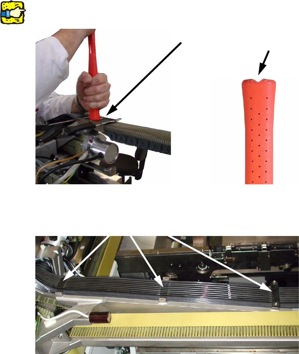 Austauschanleitung Portalkabelschlepp SI PLACE HS / S / F Ausgabe 01/2007 72 : Entfernen Sie die drei S tifte der Zugentlastun g mit e inem geeigneten Hilfsmittel (z.B. Hamme r- stiel mit eingebrachter Nut). 1 Benutzen S…