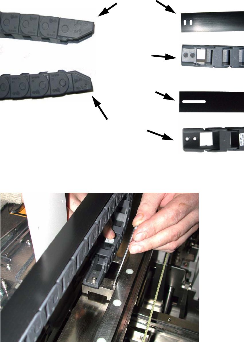 : Montieren Sie die neue Kette mit dem Abdeckband oben beginnend am Kabelschlepphalter