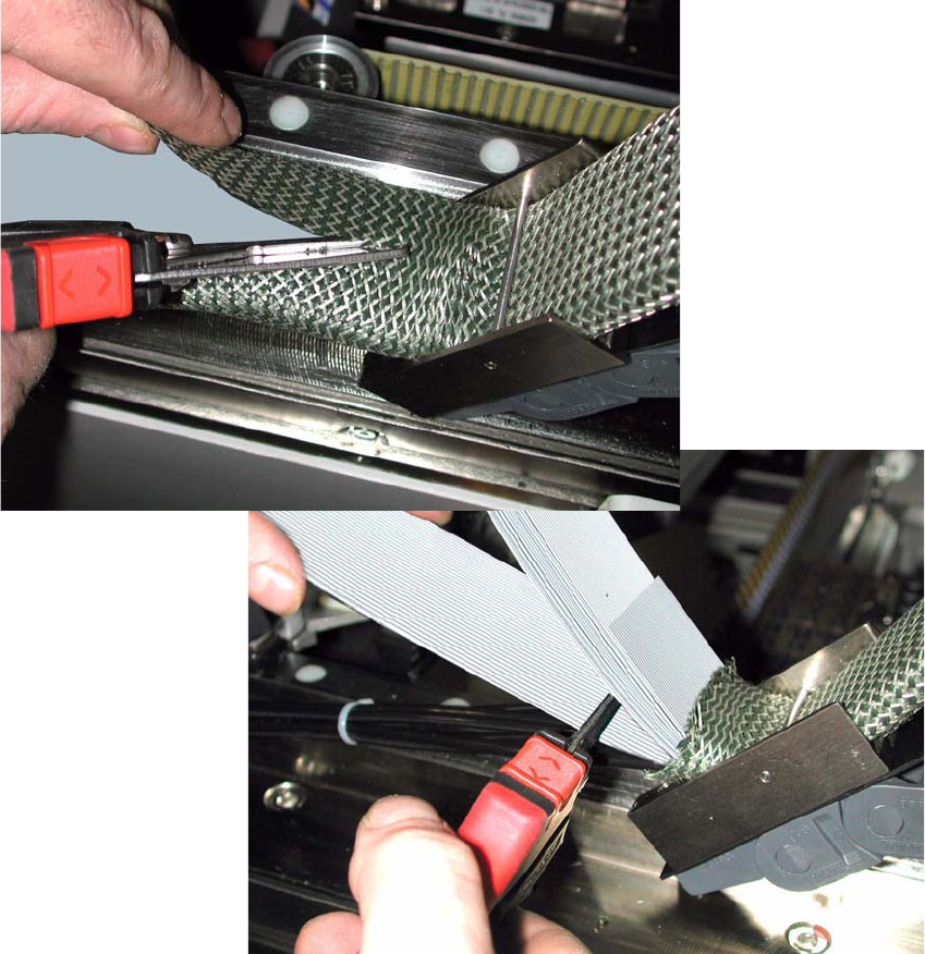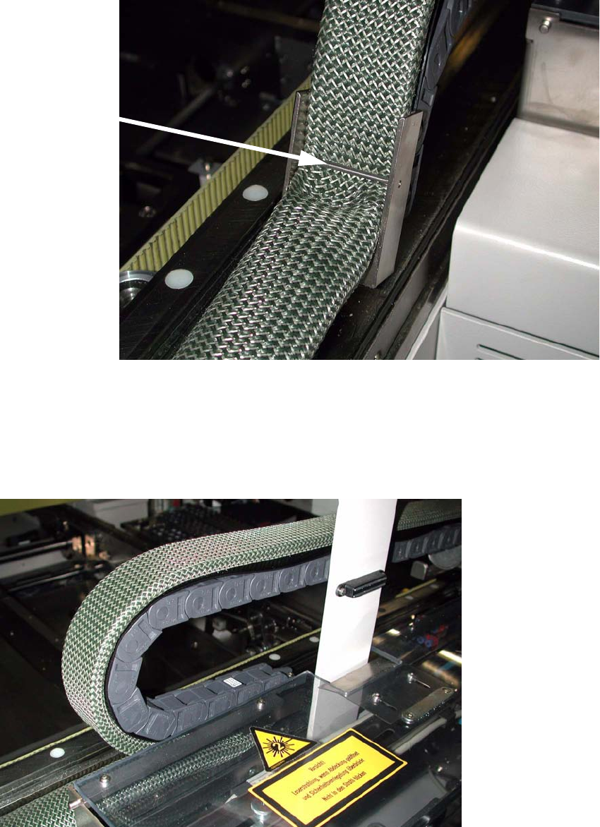 Austauschanleitung Portalkabelsc hlepp SIPLACE HS / S / F Ausgabe 01/2007 91 : S pannen Sie das Schutzband der Energiekette mitte ls der Langlöcher leicht gegen die Ener - giekette (nicht so st ark, daß sich diese dabei …