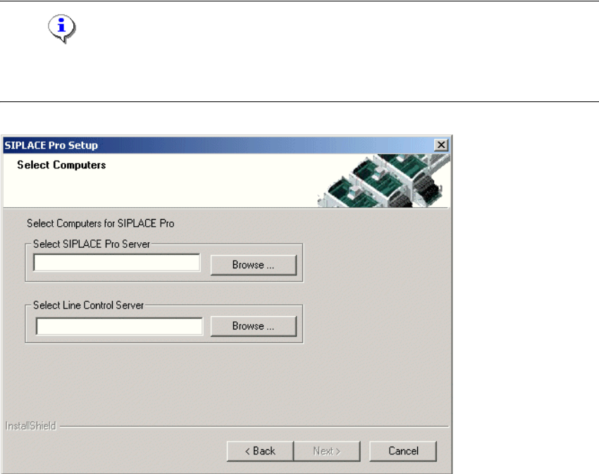 – You are prompted to enter the name of the computer where SIPLACE Pro Server is running.