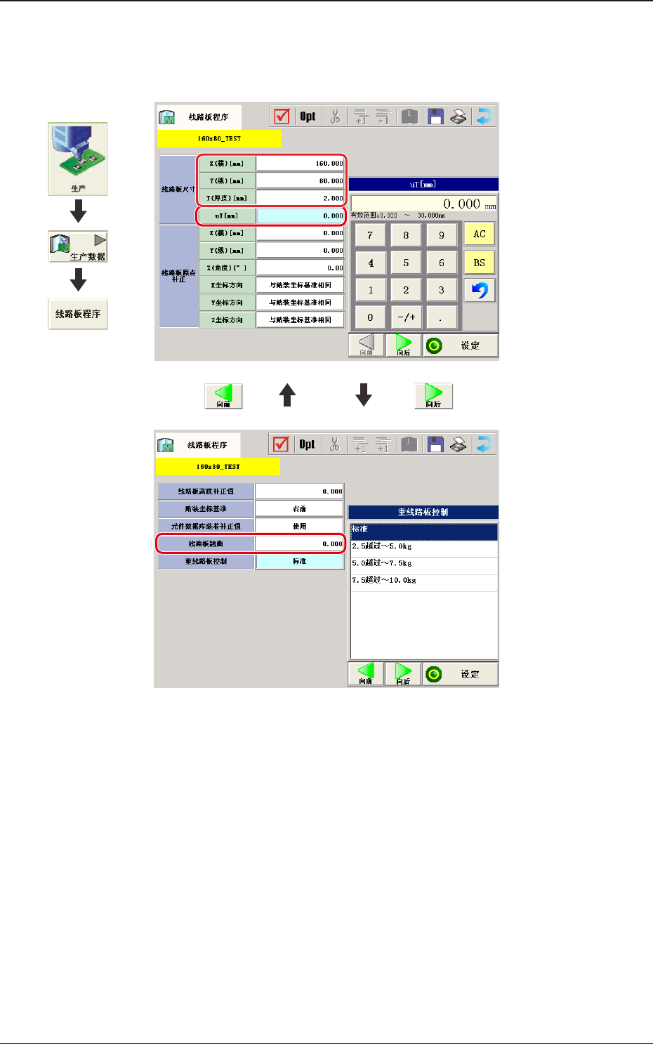 根据线路板尺寸、线路板重量编辑