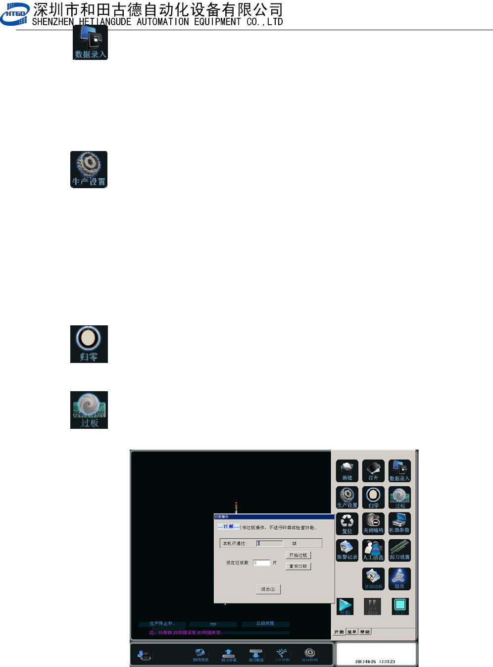 6. :过板功能。点击该按钮后出现图 4 - 6 界面。机器只执行过板功能,