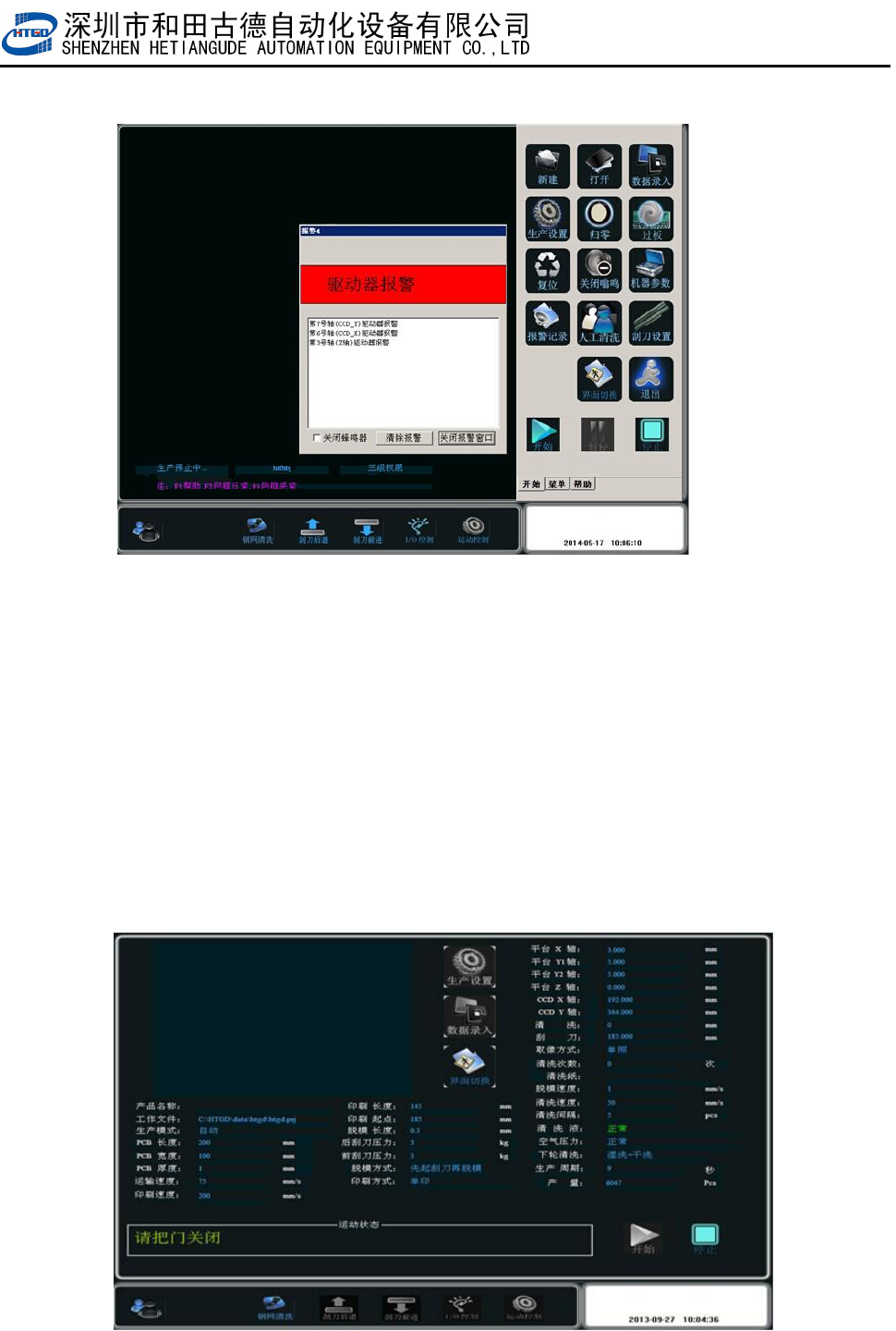 该对话框出现时,三色灯会变成红色,蜂鸣器会呜呜作响,同时机器停止运转。提示清洗