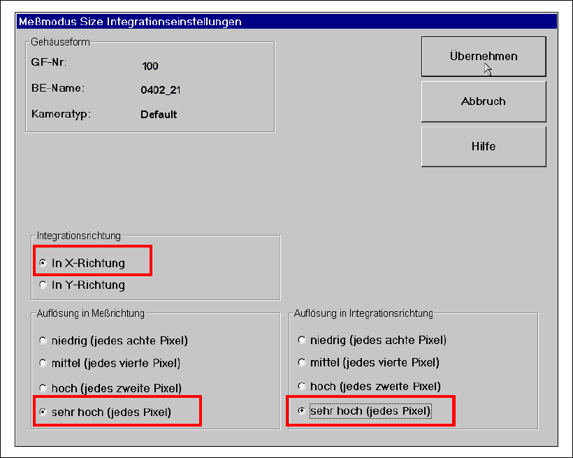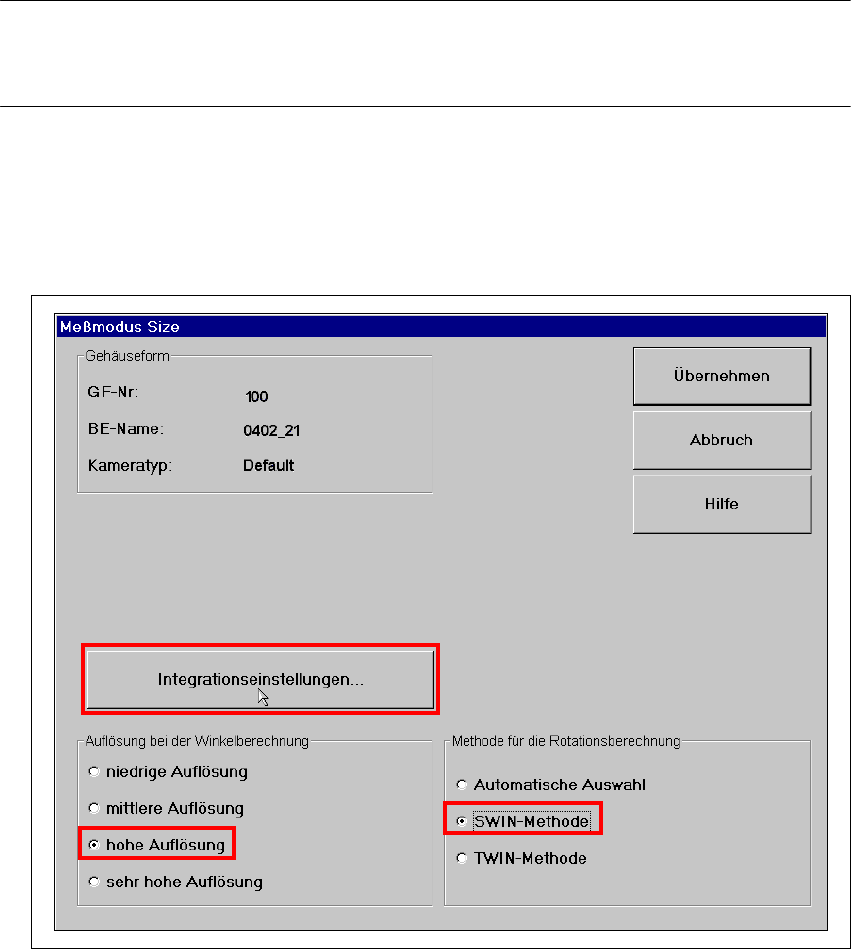 Abb. 8 - 7 Messmodus ’Size’: Integrationseinstellungen