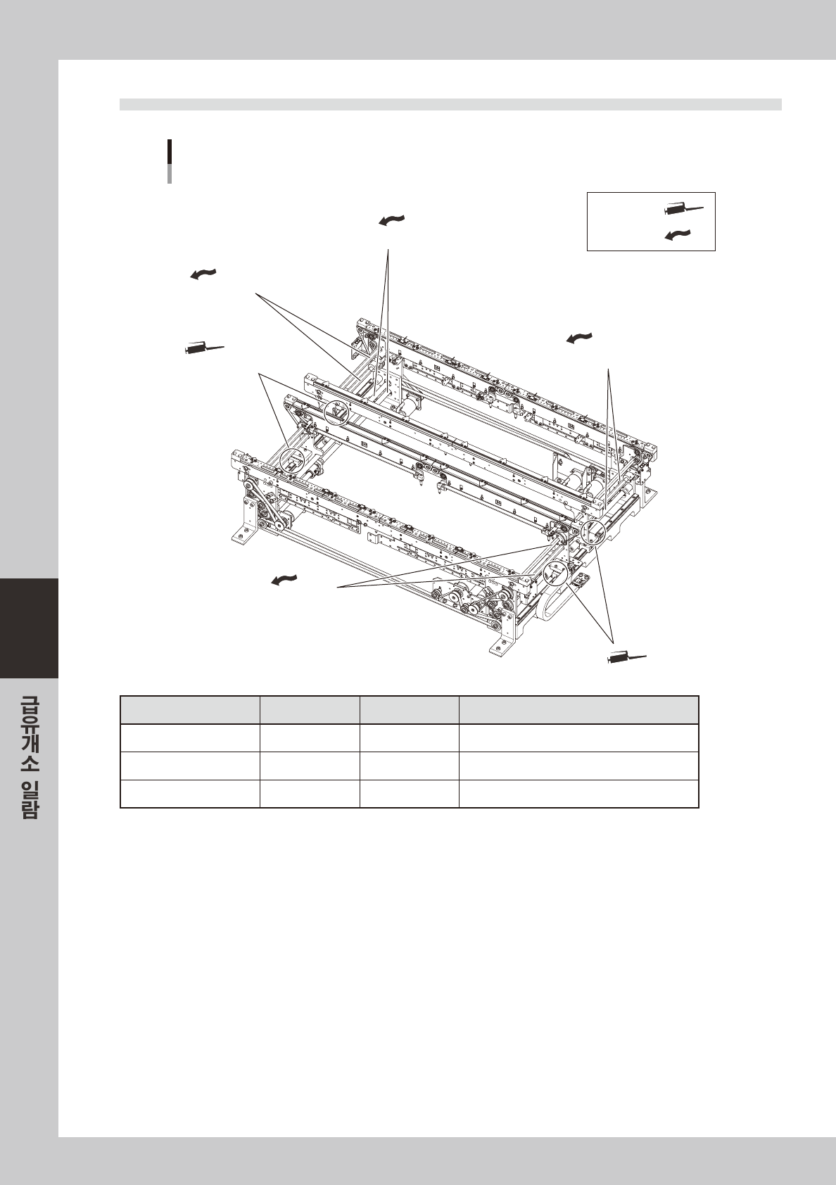가이드 8( 각테이블 ) 1 회/ 1 개월 구리스건:표준노즐