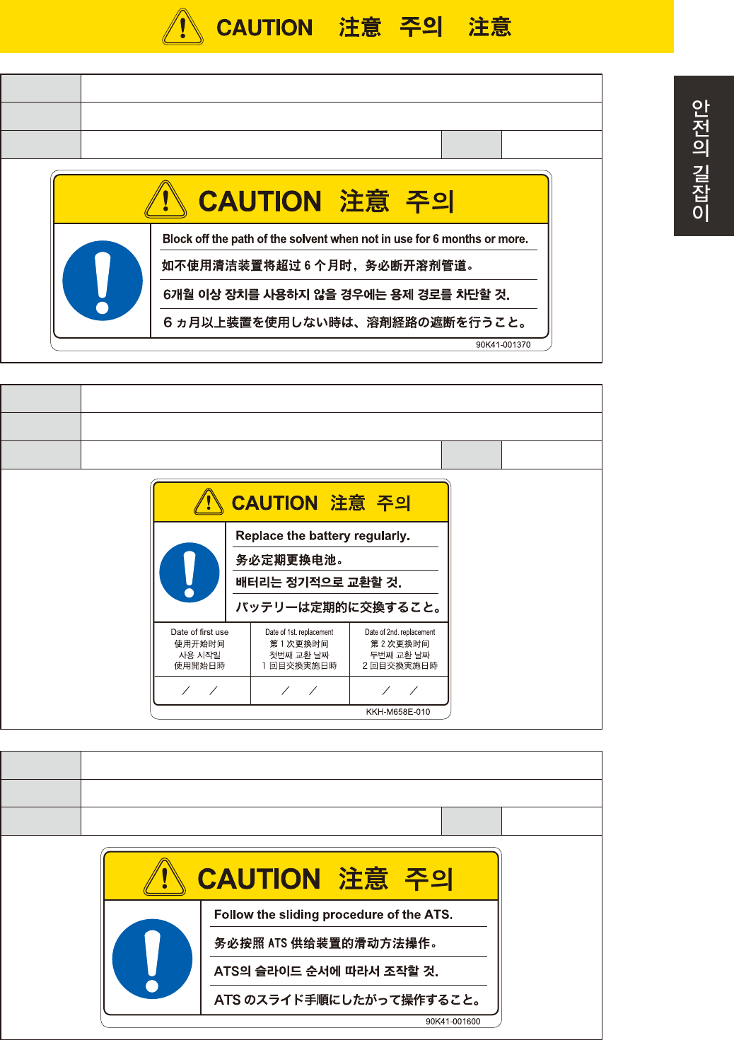 위험의 회피 장치를 6 개월 이상 사용하지 않을 때에는 , 펌프의 보호를 위해 용제 경로를 차단할 것 .