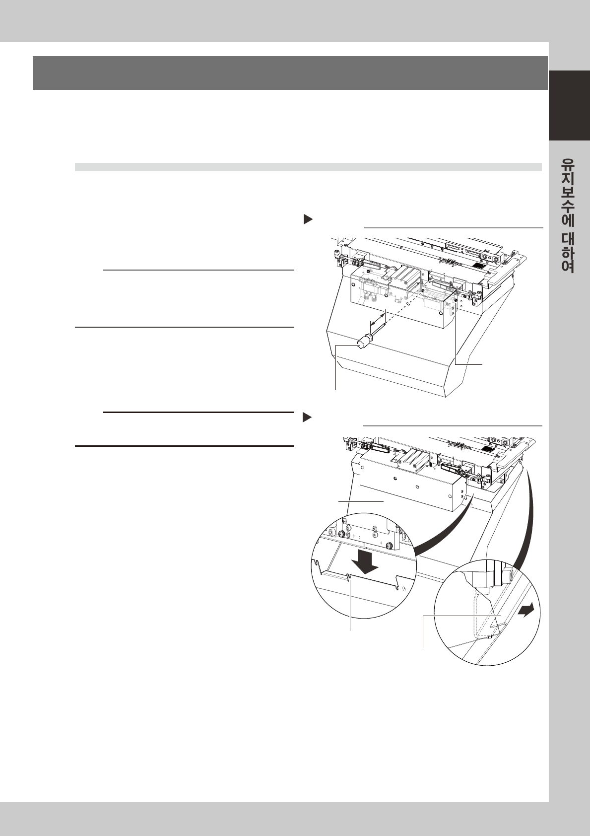 유지보수 작업을 실행함에 있어서 , 장비 내부에 접근하기 쉽도록 하기 위해 테이프 커터부의 덕트를 분리할