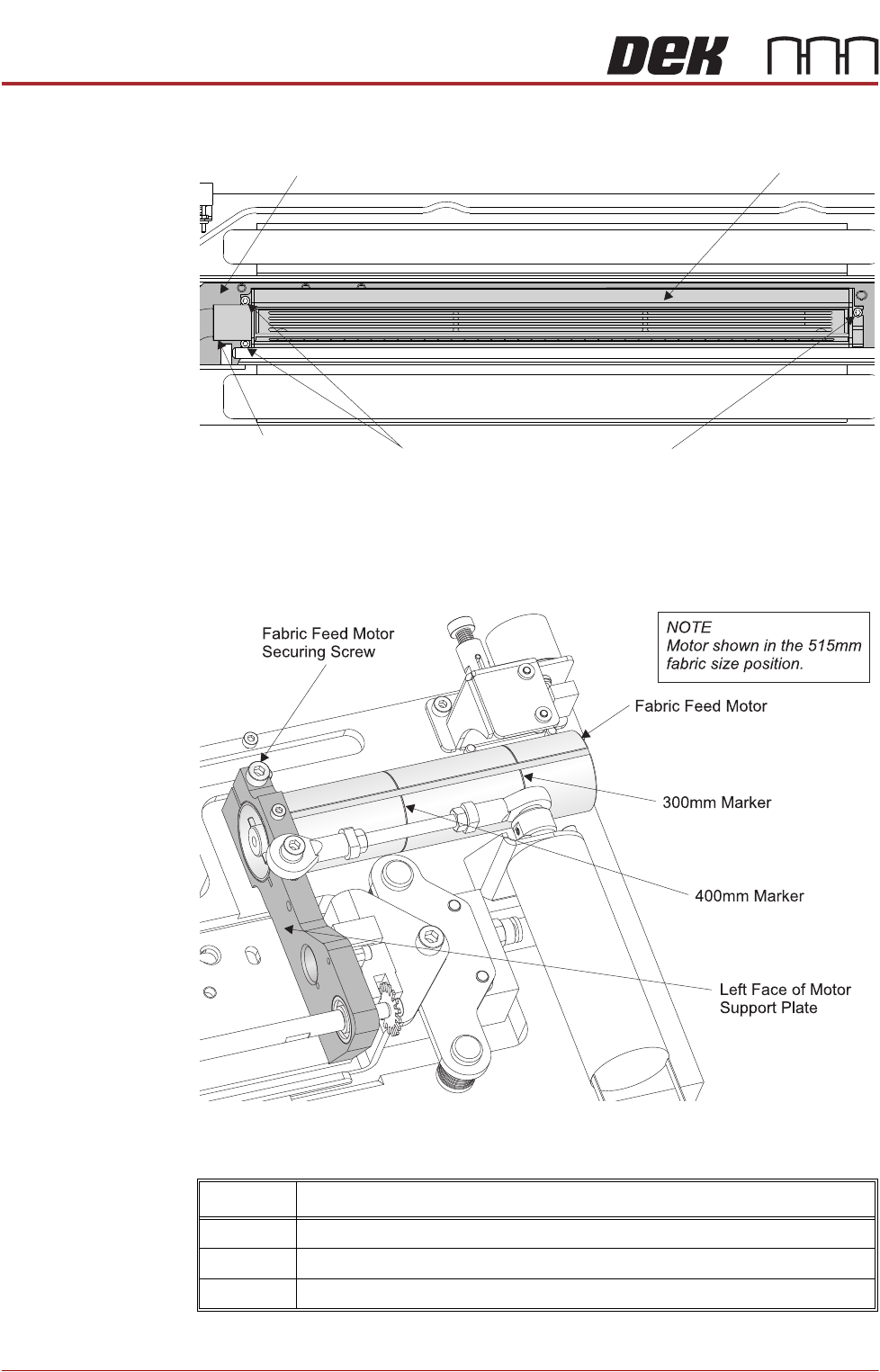 515mm Left edge of the motor aligned to the left face of the motor support plate
