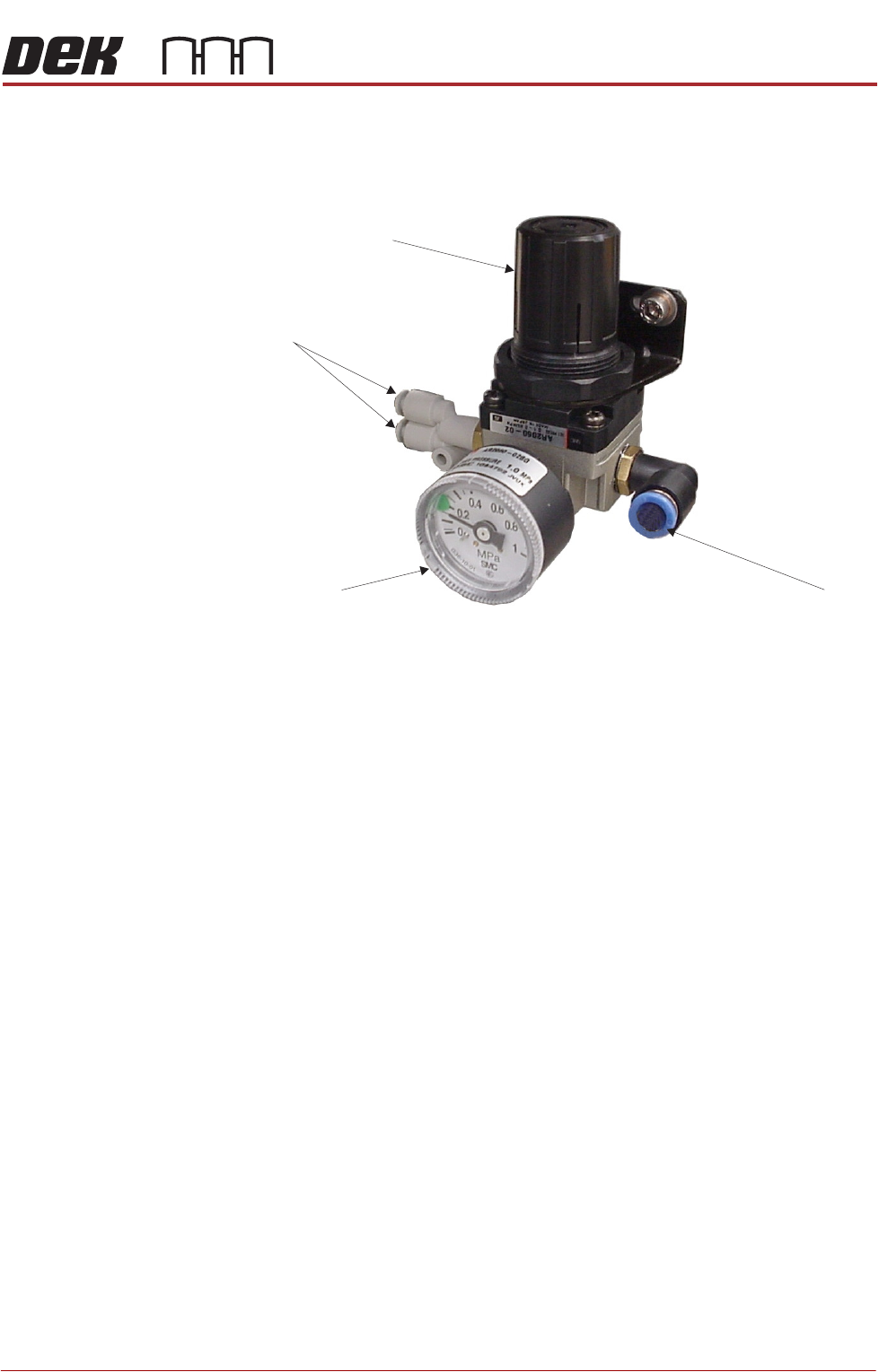 Air Regulator The air regulator sets the air pressure to the air ionizer and must be set to