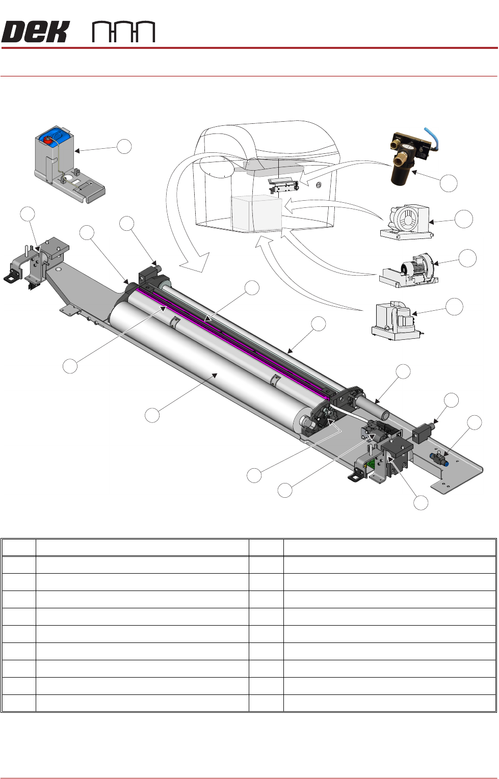 1 Squeegee Assembly (Wipers) 10 Solvent Spray Bar