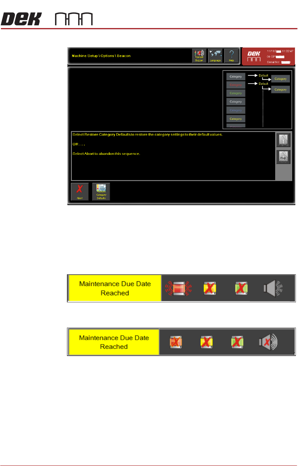 MAN MACHINE I NTERFACE PROGRAMMABLE BEACON 34.14 Technical Reference Manual Chapter Issue 11, Jan 17 where the beacon representation is the same for each category . Select Edit . Select the (categories) for the condition…