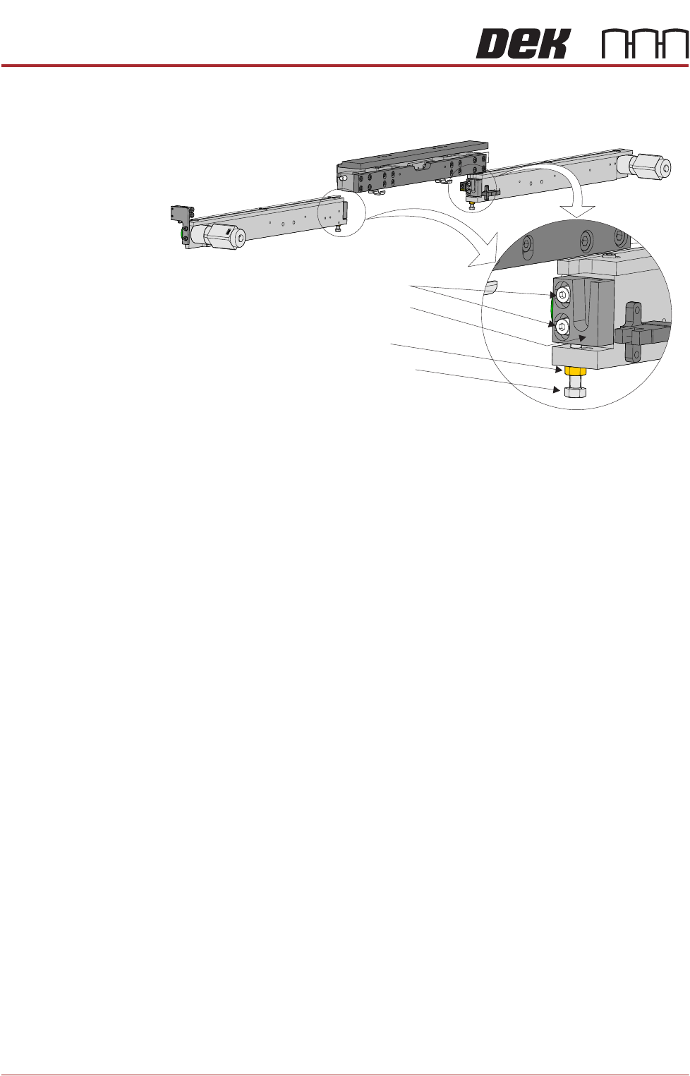 5. Adjust the conveyor to achieve alignment with the print station rail.