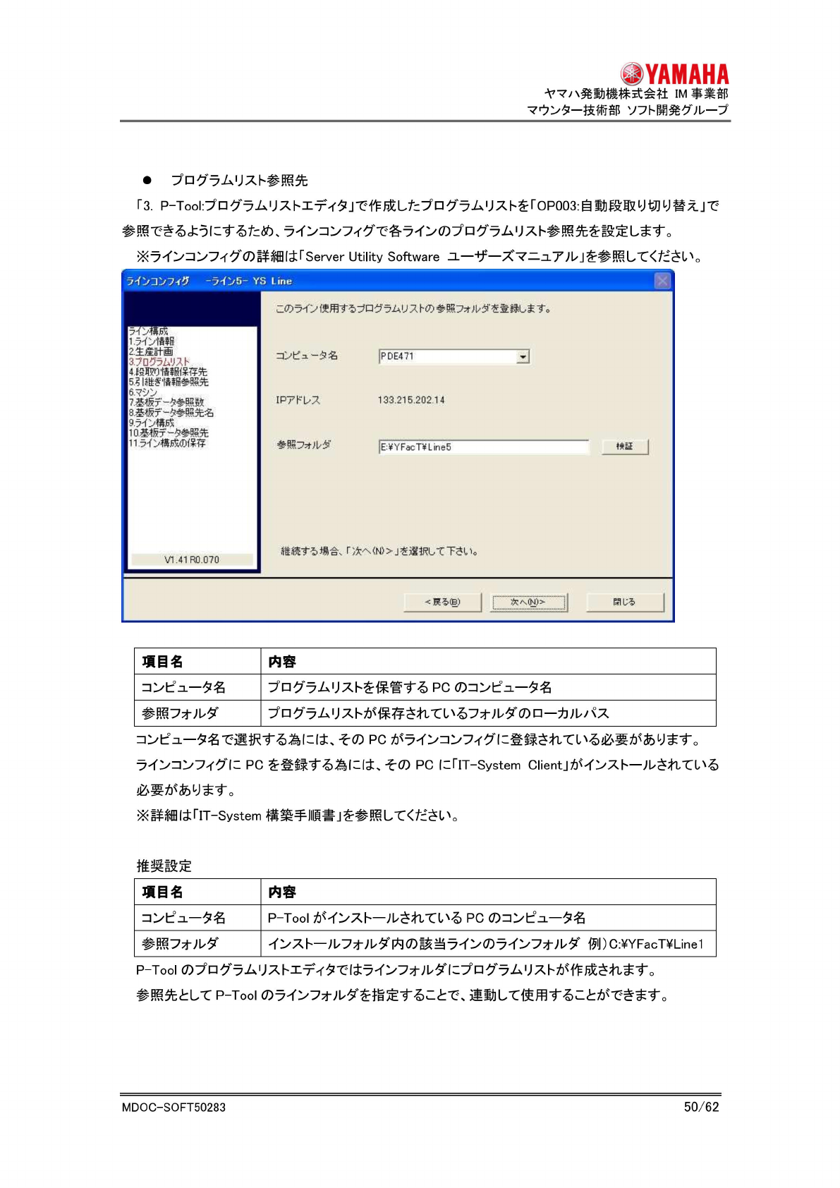 L ine1 Line2 ^YAMAHA •Vq 八髡 u 檄株 式会社 IM 事 K部 夕一技 作亍部 5.3.1. 2 段定 「 OP003: 自 勤段取 LJ 切 叮 替丸 依使用 寸盲 埸合、 ^口^24>17 •卜 参照先 殳定方 法力逢 玄 1 J 杀文 IT-System Server 殳定 ^表/Cl、 盲内 容仁徒 作 L f 。 乙 0)官 殳定^ S-Tool: 外段 十亡 士共通 13寸。 概念囱 生筐口 …