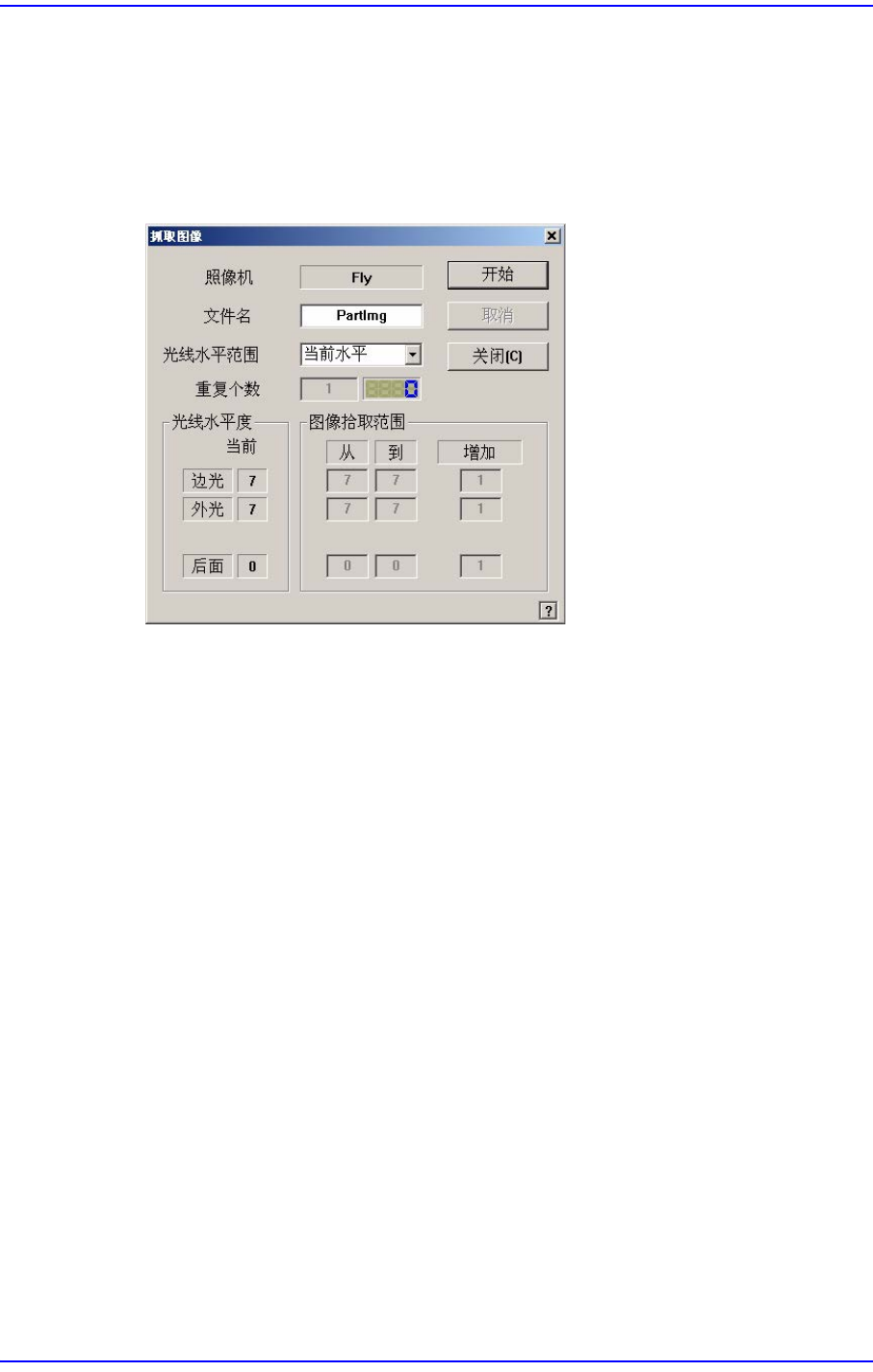 7-34 Samsung Component Place r SM481 Administrator's Guide 显示当前照明值。 图像拾取范围 显示用在保存 Image 的照明值范围及间隔。 Light Level Range 设置为 User Define 用 户可直接输入 / 修改范围。 从 显示照明值变化的开始 Level 。 到 显示照明值变化的结束 Level 。 增加 设置照明值变化间隔。 …