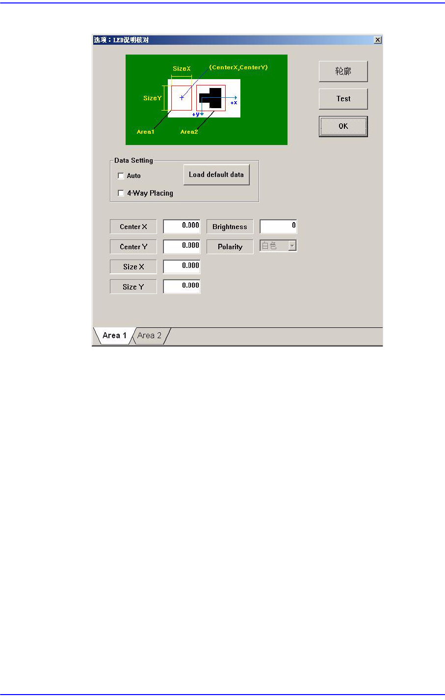在“Area2”选项卡对话窗口设定 LED的Black区域。