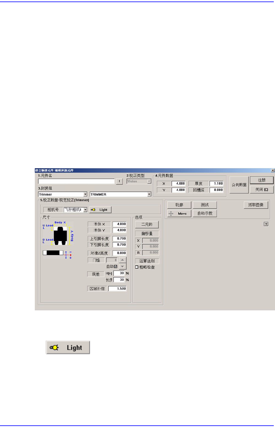 设定识别部品用摄象机的照明度。 详细事项请参照 “7.1.1 共同Align Data (7-15