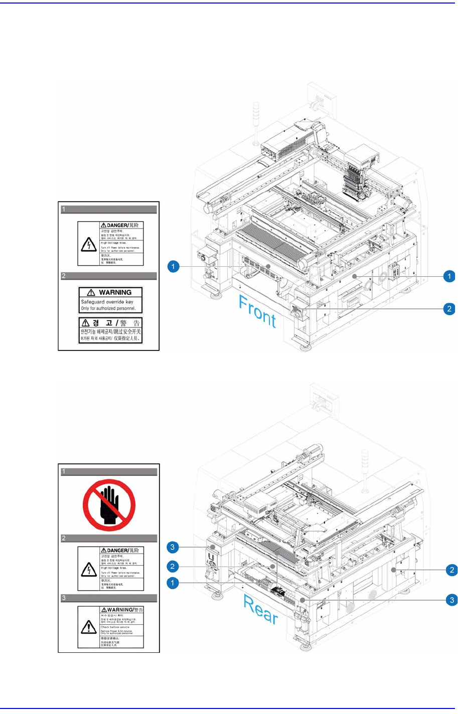 Samsung Component Place r SM481 Administrator's Guide vi 设备运行时请勿伸进手 贴有此标签处有移动体, 驱动中拆开或打开 盖把身体的一部分伸进设备内 部时非常危 险。 维修前请停止设备。 为了维修设备及采取故障措施 请首先停止设 备。 不要改造门钥匙。 不要擅自改造门钥匙。 否则会危害到安全。 设备铭牌 (Machine Name Plate) 标示着设备的模式名、 序号…