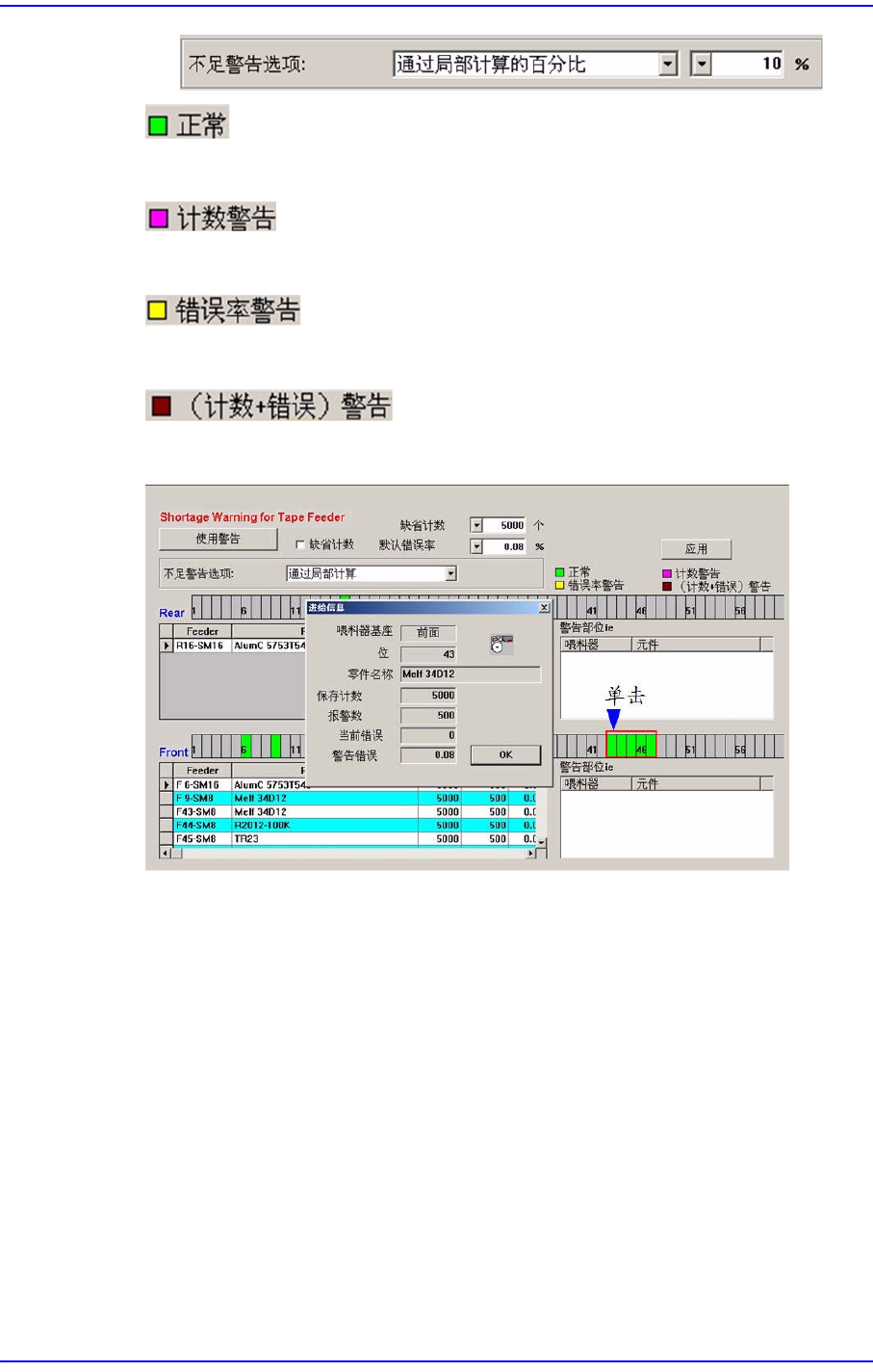 当Tape Feeder供给部件失败的错误率超出在此设定值以上时表示部件供给错误