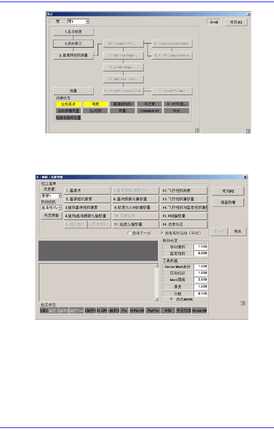 12-27 Machine Calibration 12.3.3. 基准照相机测量 基准相机未进行校正时, 剩下的按钮不会被激活。 <1. Fid. Scale Mark Position> 按钮 设置处于 ANC 顶面的 Fiducial Ma rk 的位置。 用校正 To o l 进行 Fidcial Camera Scale 校正时, 作业前要把校正 To o l 放到 ANC 的 校正 To o l 位置。