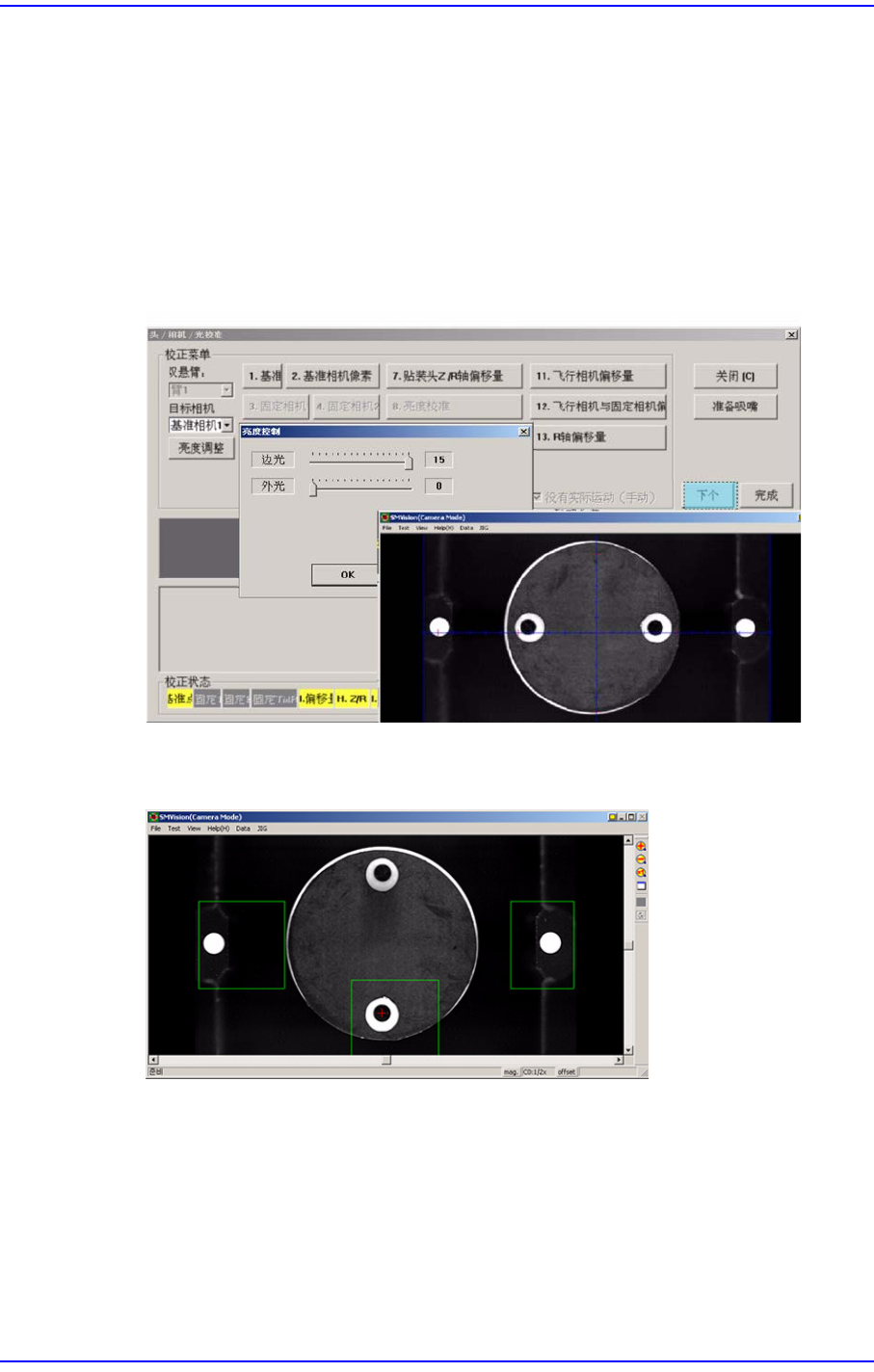 Calibration Tool上的 Fiducial Mark明显为止调整照明亮度后点击 <下个>按钮。