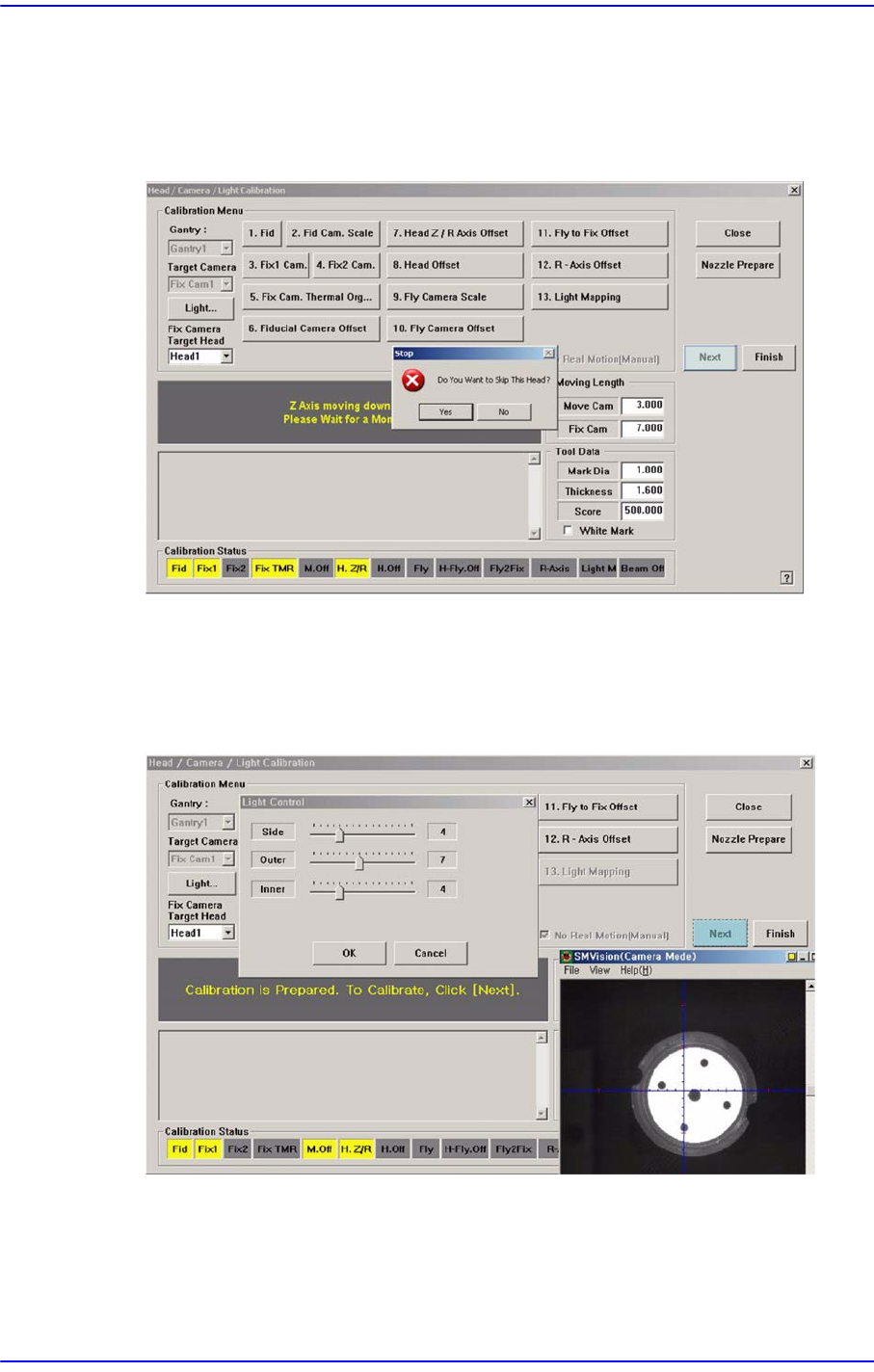5. 显示“将 Z轴移至低处…请等一会”消息。显示是否跳跃对 Head1的校正进行的