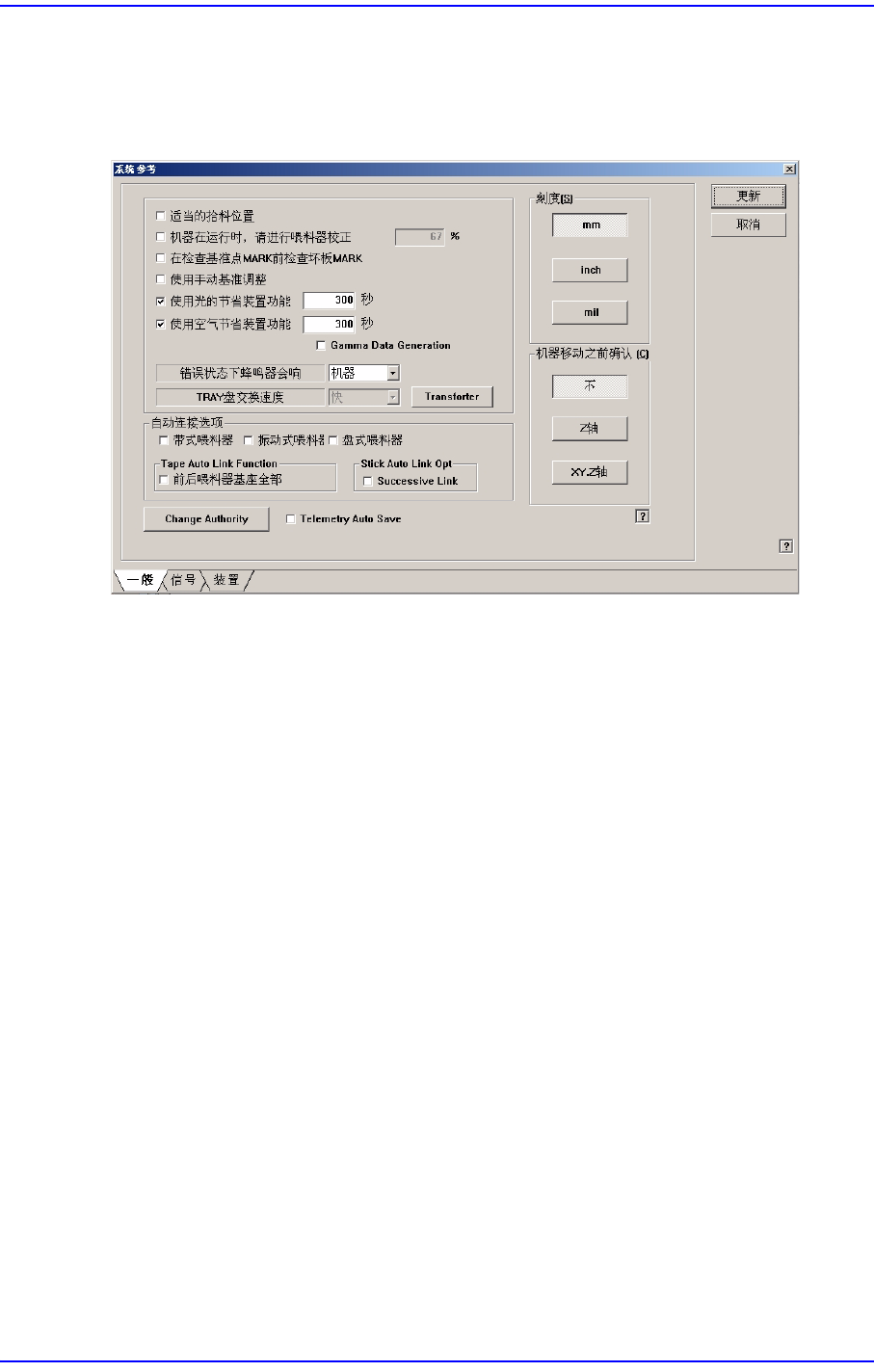 果选择此功能,贴装时基准标识别失败,则在MMI画面下端的错误信息框中显