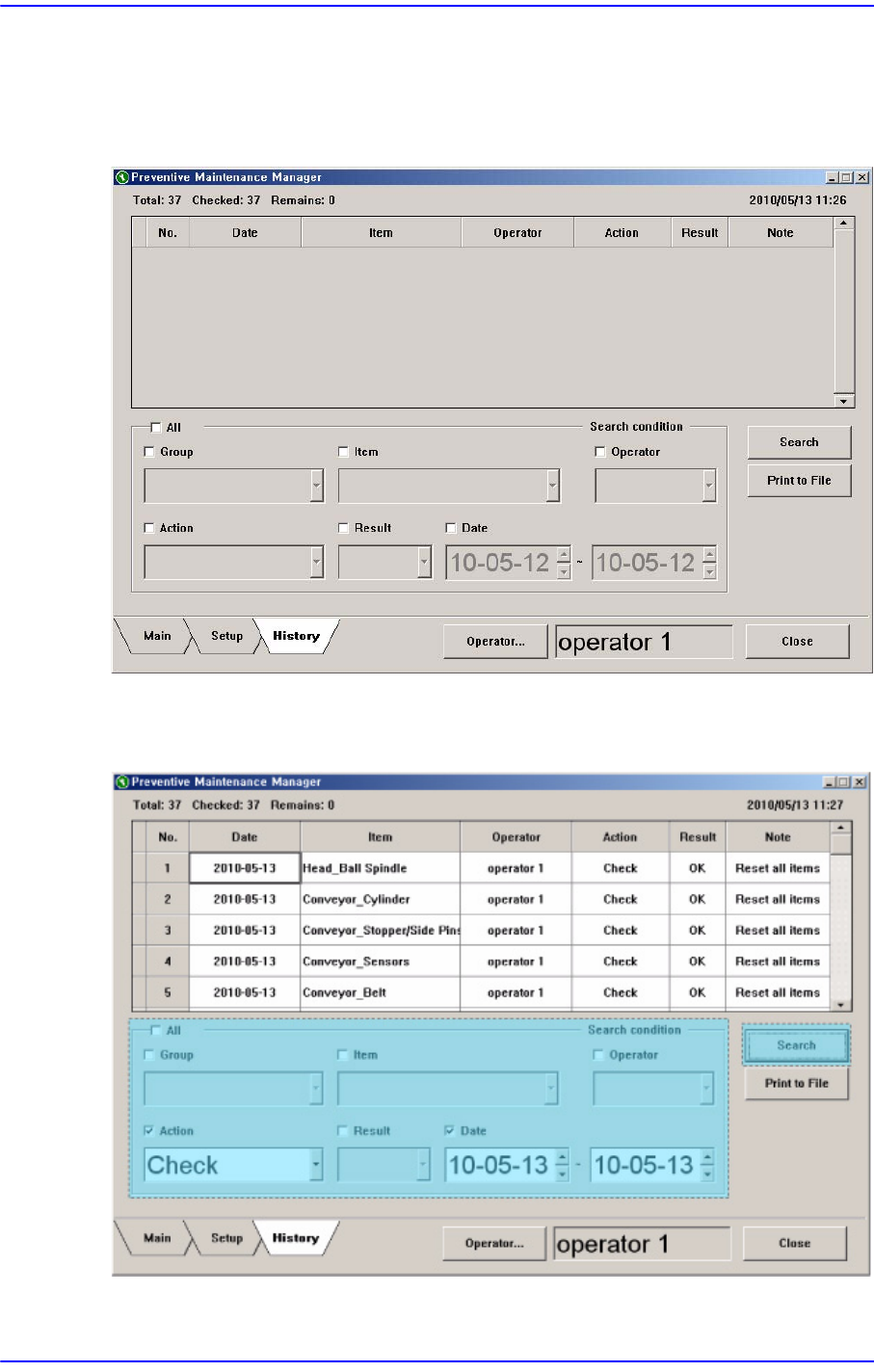 查看检查记录时,输入检查条件后点击<Search>按钮。