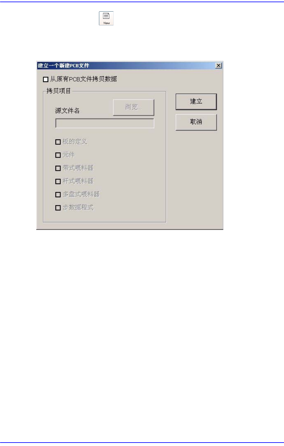 3-2 Samsung Component Place r SM481 Administrator's Guide 3.1. 新建 ( New ) [Ctrl+N] < 新建 > 命令在新建 PCB 文件时 使用。 选择 < 新建 > 命 令时显示如下的对话框。 图 3.2 “ 产生一个新的 PCB 文件 (新建 PCB 文件) ” 对话框 < 从原有 PCB 文件拷贝数据 > 检查 盒…