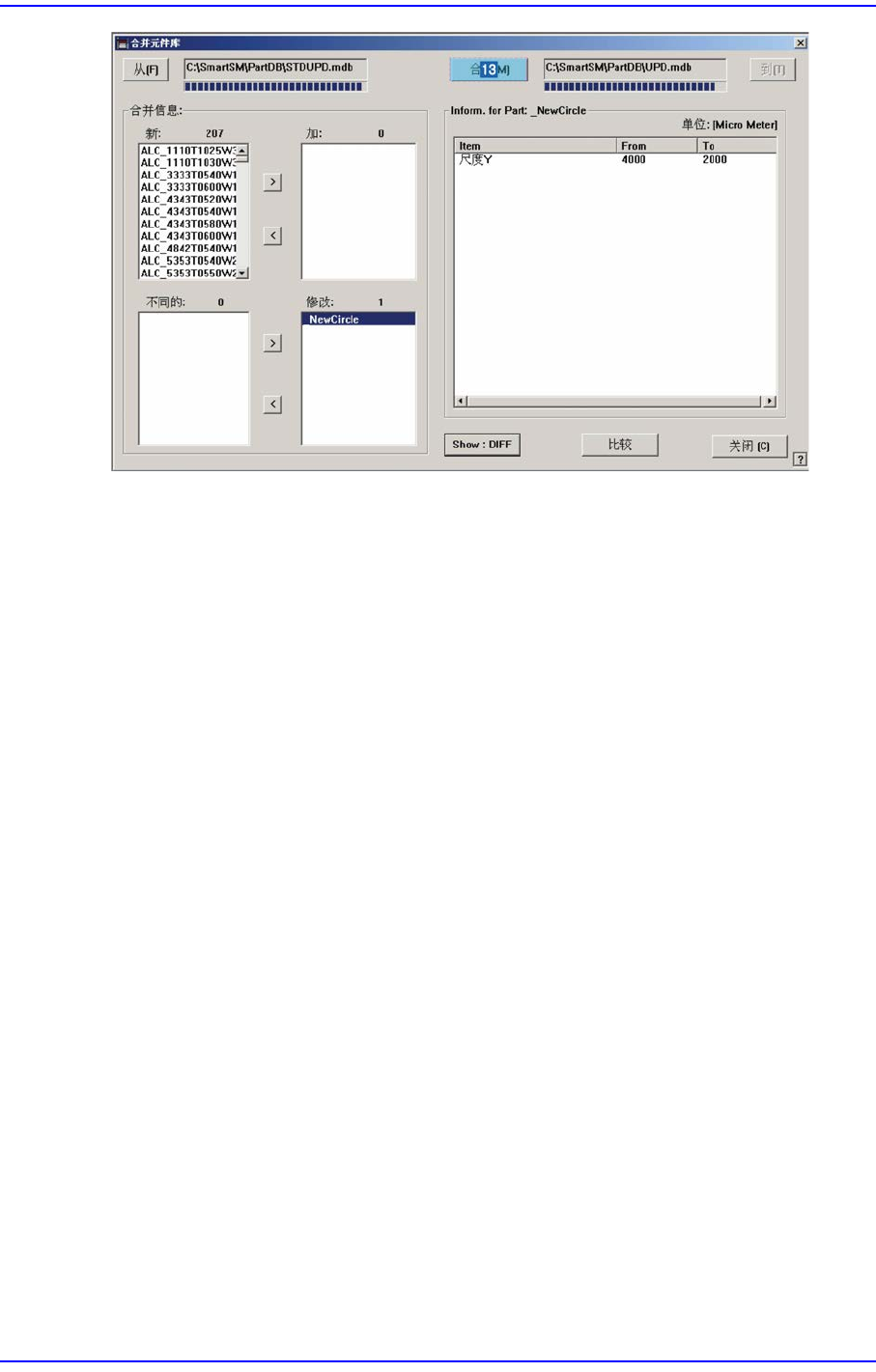 在〈New:〉目录框或〈Different::〉目录框选择要合并的部件名