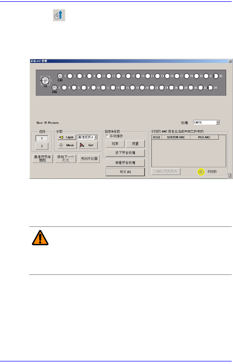 单击此按钮时,吸取在ANC当前选择的Hole上的吸嘴。将要吸取的头在 “装