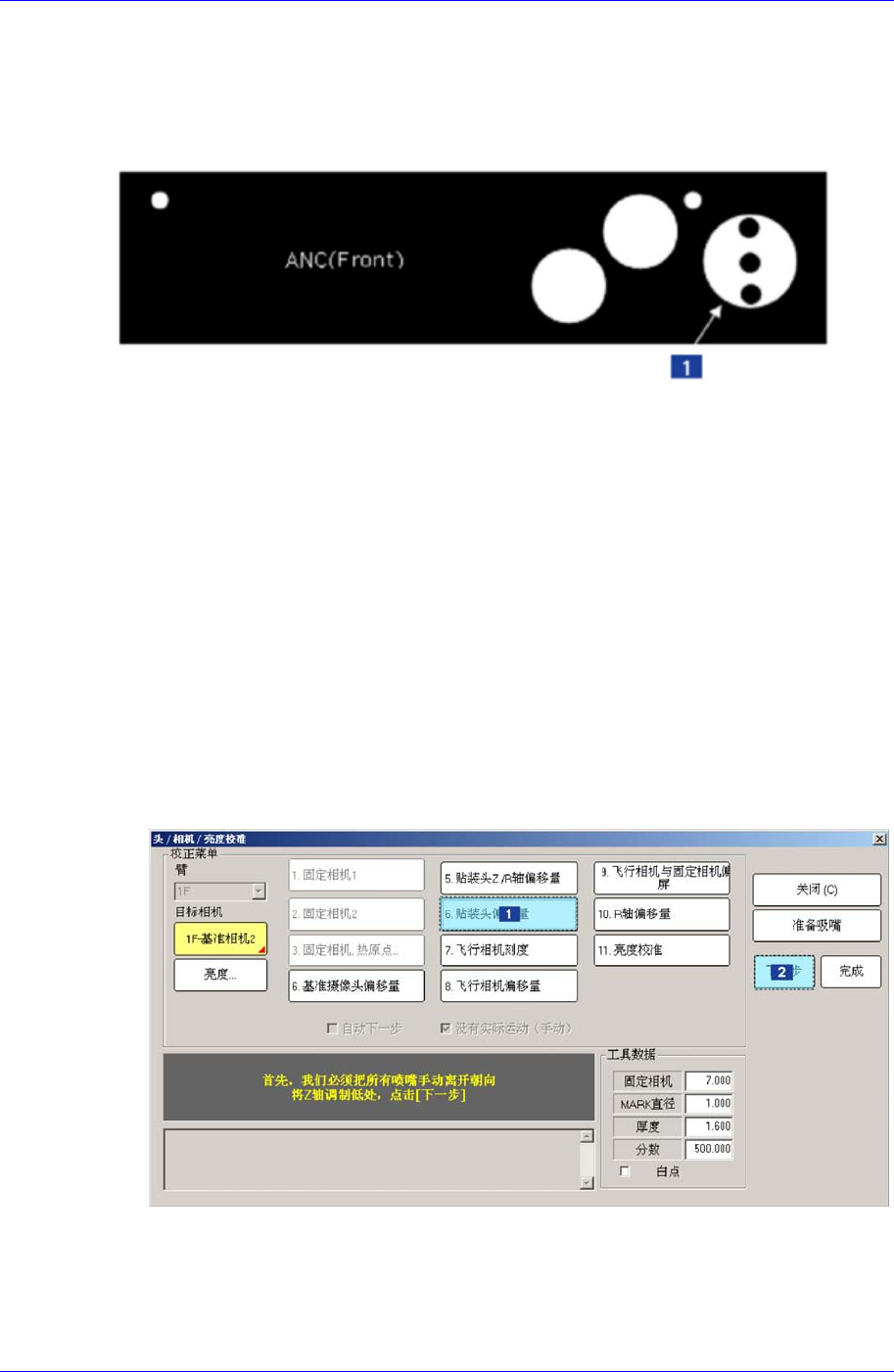 点击<6.Head Offset>按钮消息窗显示“首先,我们必须把所有吸嘴手动离开朝