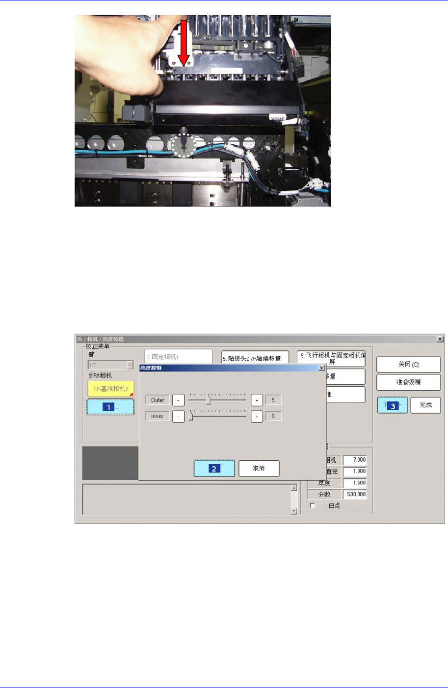 CAMERA查看HEAD的喷嘴槽,把HEAD SPINDLE上升到部件识别高度后要关
