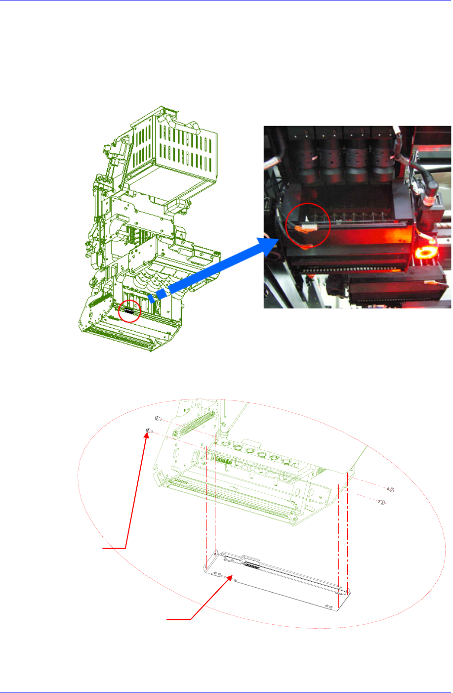 1. 首先, 参照Maintenance Reference 手册的 “Head Mirror” 执行清扫后确认贴装