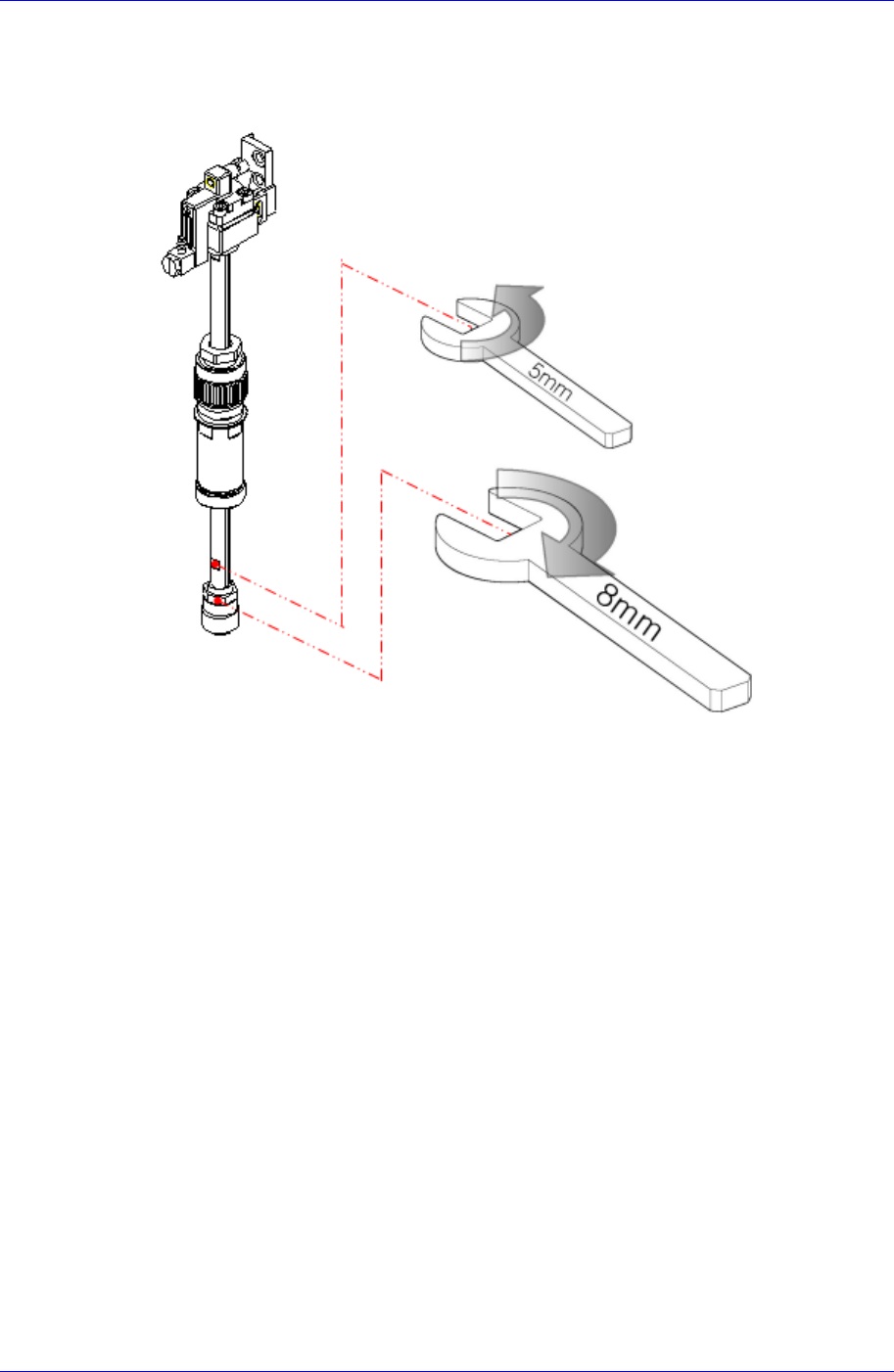 后,用相同等力量把5mm扳手按逆时针方向、把8mm扳手按顺时针方向旋转分