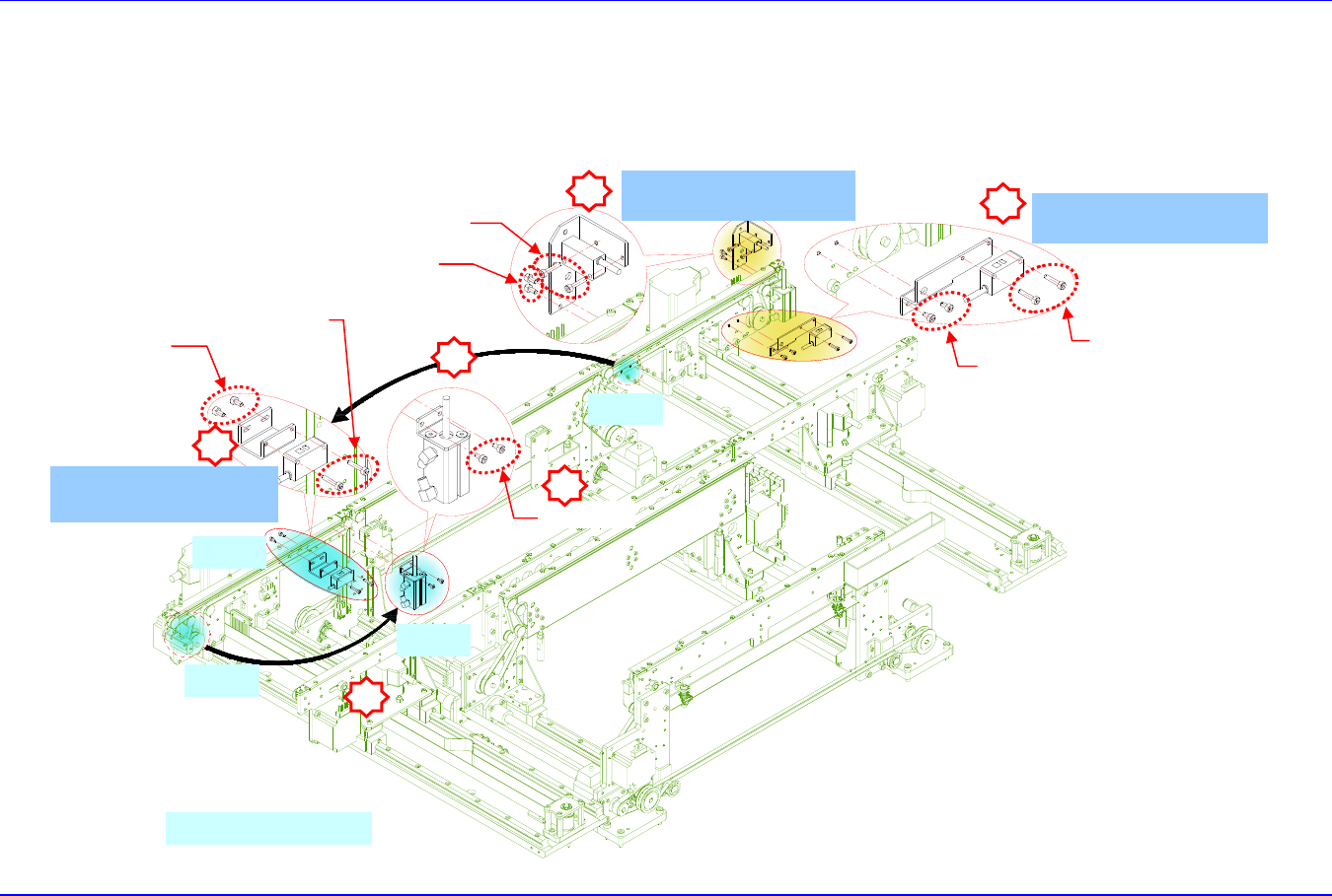 Conveyor & BUT 5-71 9. 按下图的序号顺序进 行组装。 ① Ext1 BKT(J70531545A) 与拆卸的 SNS 一起进行组装。 ② Ent1 BKT(J70531545A) 与拆卸的 SNS 一起进行组装。 2 1 Ext1 BKT(J705 31545A) Ent2 ► Ext1 SNS ( MMI 变更 ) Ent1(J70531545A) Ext2 ► Ent1 SNS ( MMI 变更 ) 2…
