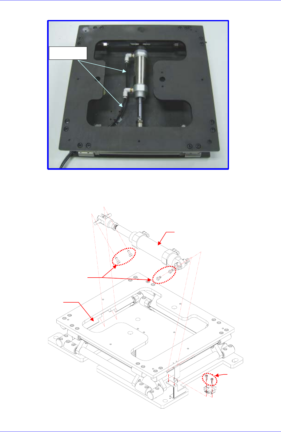 11. 气缸接头上连接空气管,利用固定螺丝连接Back Up Plate。