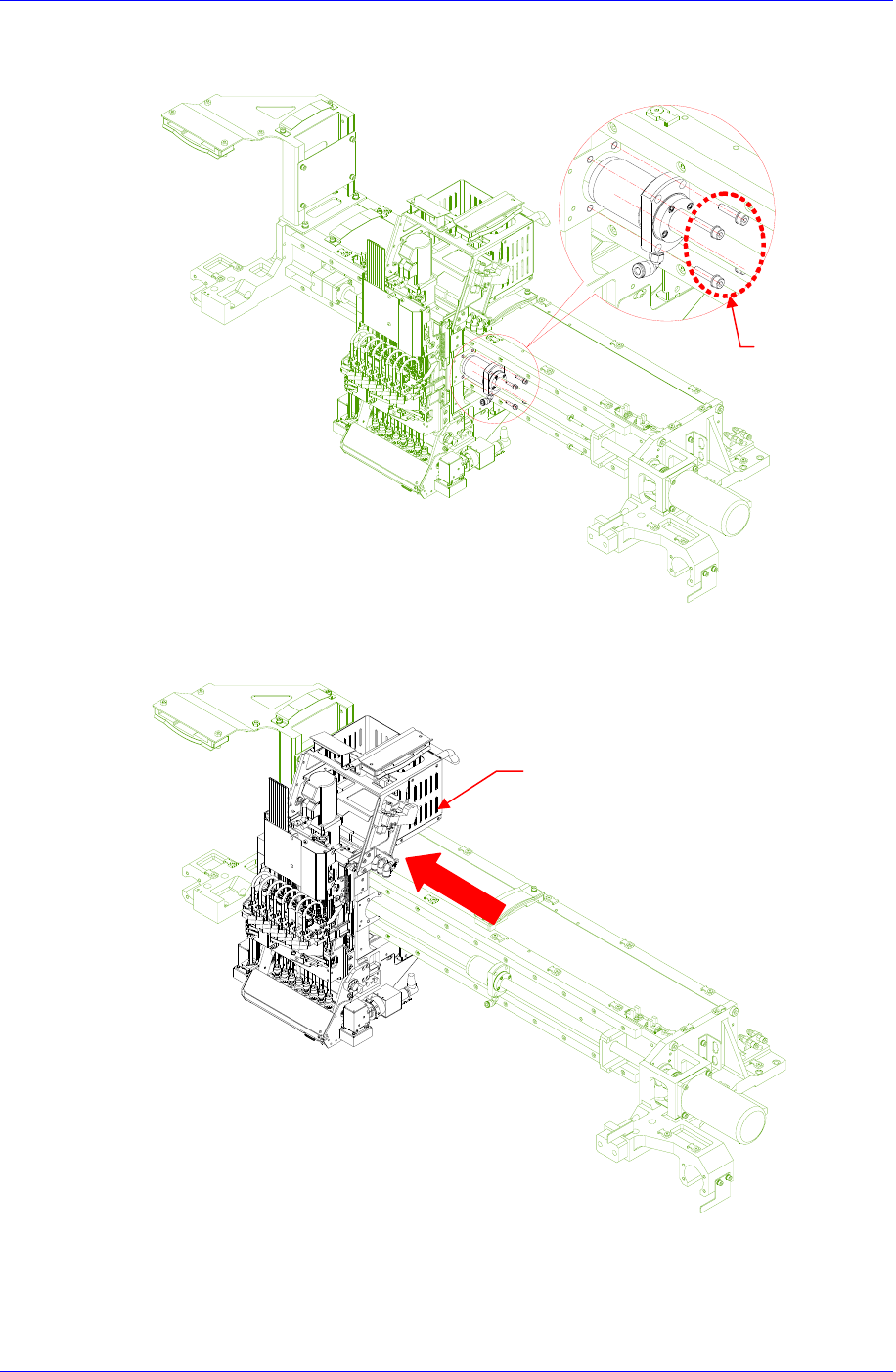 6. 拧开把Ball Screw固定在Head Module的固定螺丝(4-M5*20)后,从Head Module