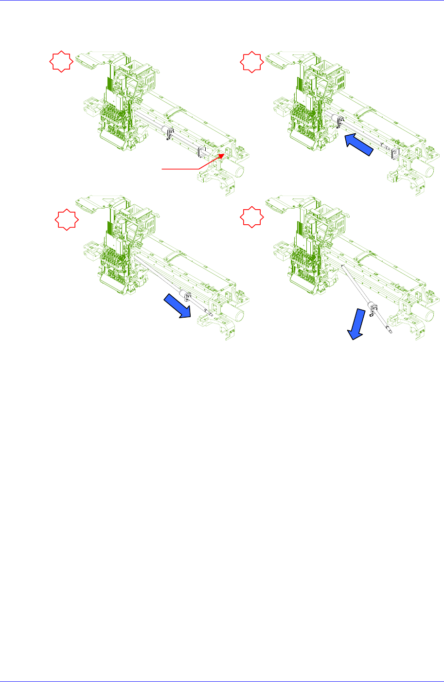 X-Y Frame 6-19 8. 按下图中的序号顺 序分离滚珠丝杠。分离过程 中请注意滚珠丝杠与 Y1 Plate 发 生碰撞受损略倾斜进行分离。 Y1 Plate 1 2 3 4
