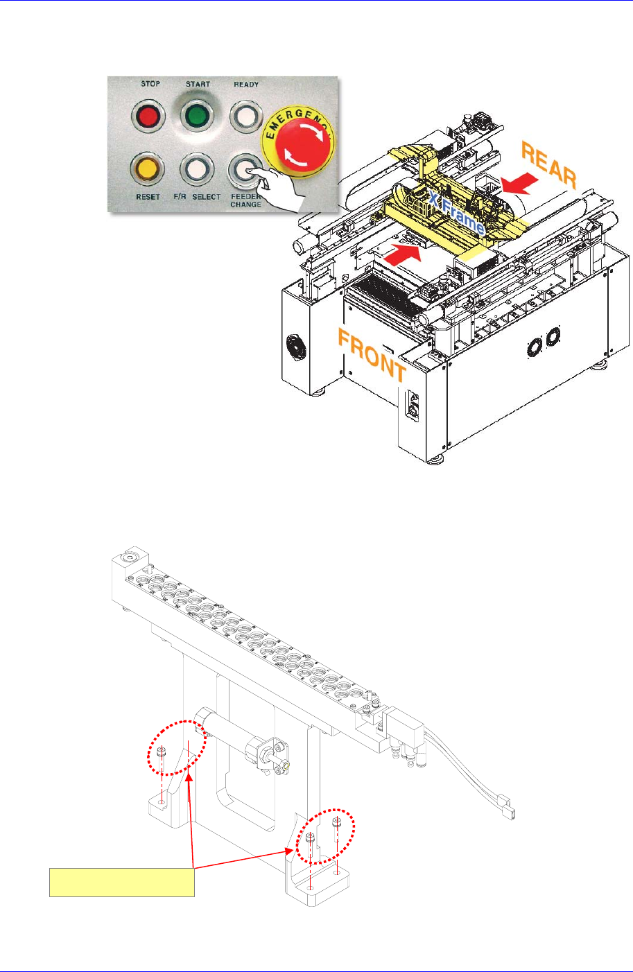 1. 按‘Feeder Change’按钮把Front/Rear X Frame移动到设备的中间位置