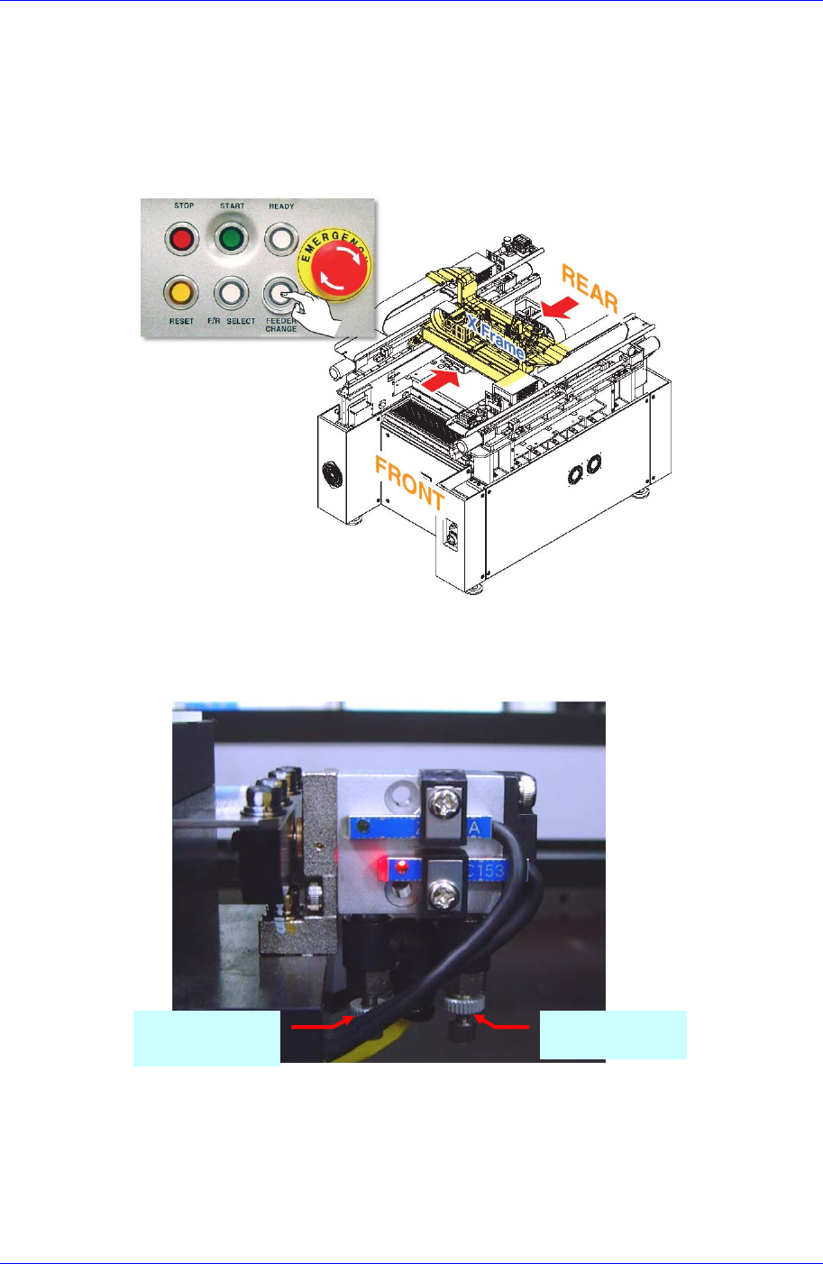 Samsung Component Placer SM431 Service Manual 7-20 7.4.4. ANC Shutter S peed Speed Controller 异常 (ANC 误启动 ) 7.4.4.1. ANC shutter S peed 调节次序 1. 按 ‘Feeder Change’ 按钮把 Front/Rear X Frame 移动到设备的中间位置 2. 按设备正面的 <EMG> …