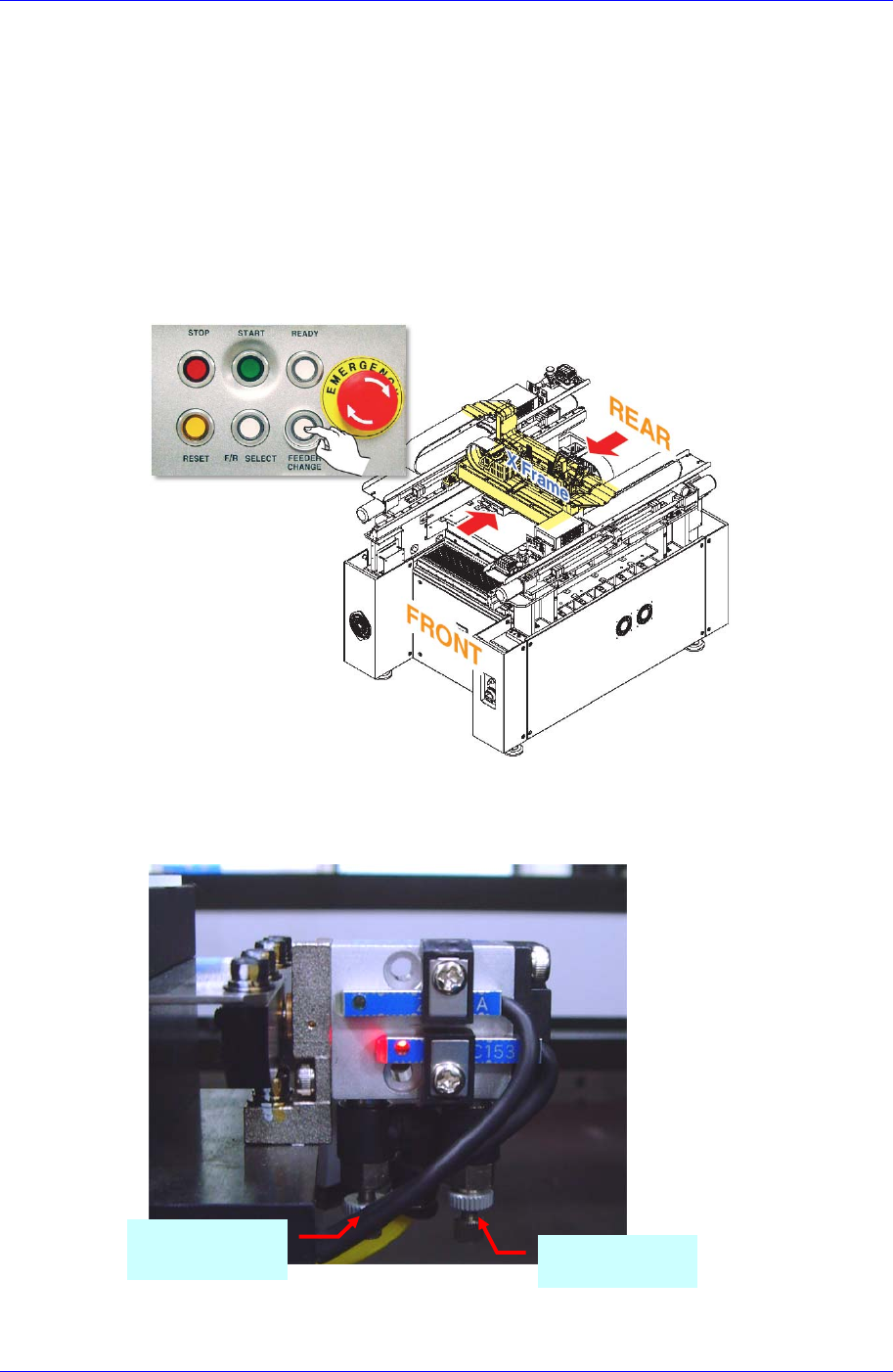 1. 按‘Feeder Change’按钮把Front/Rear X Frame移动到设备的中间位置