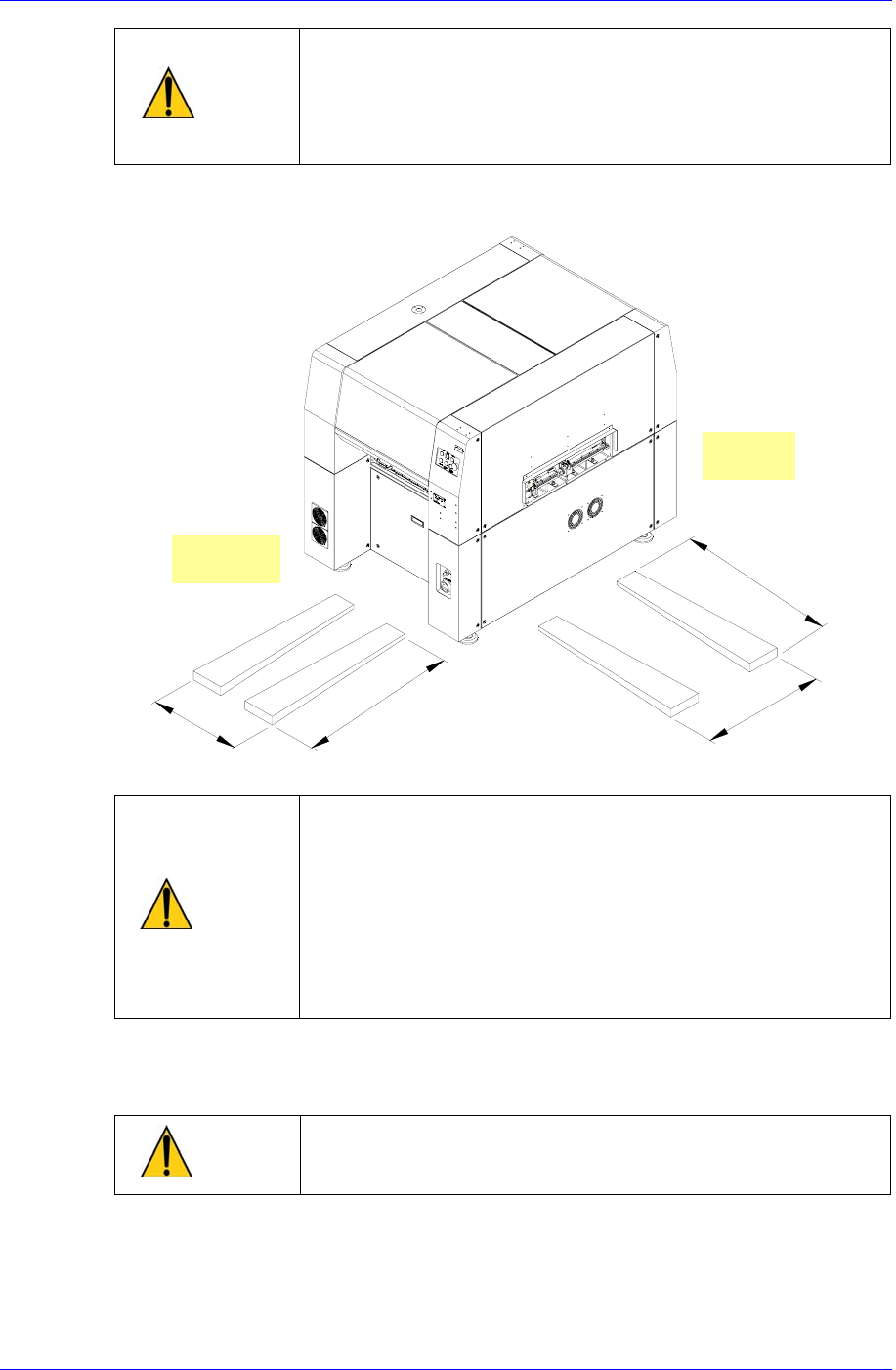 另外,不可以让设备倾斜,并检查叉式升降机的升降臂位置