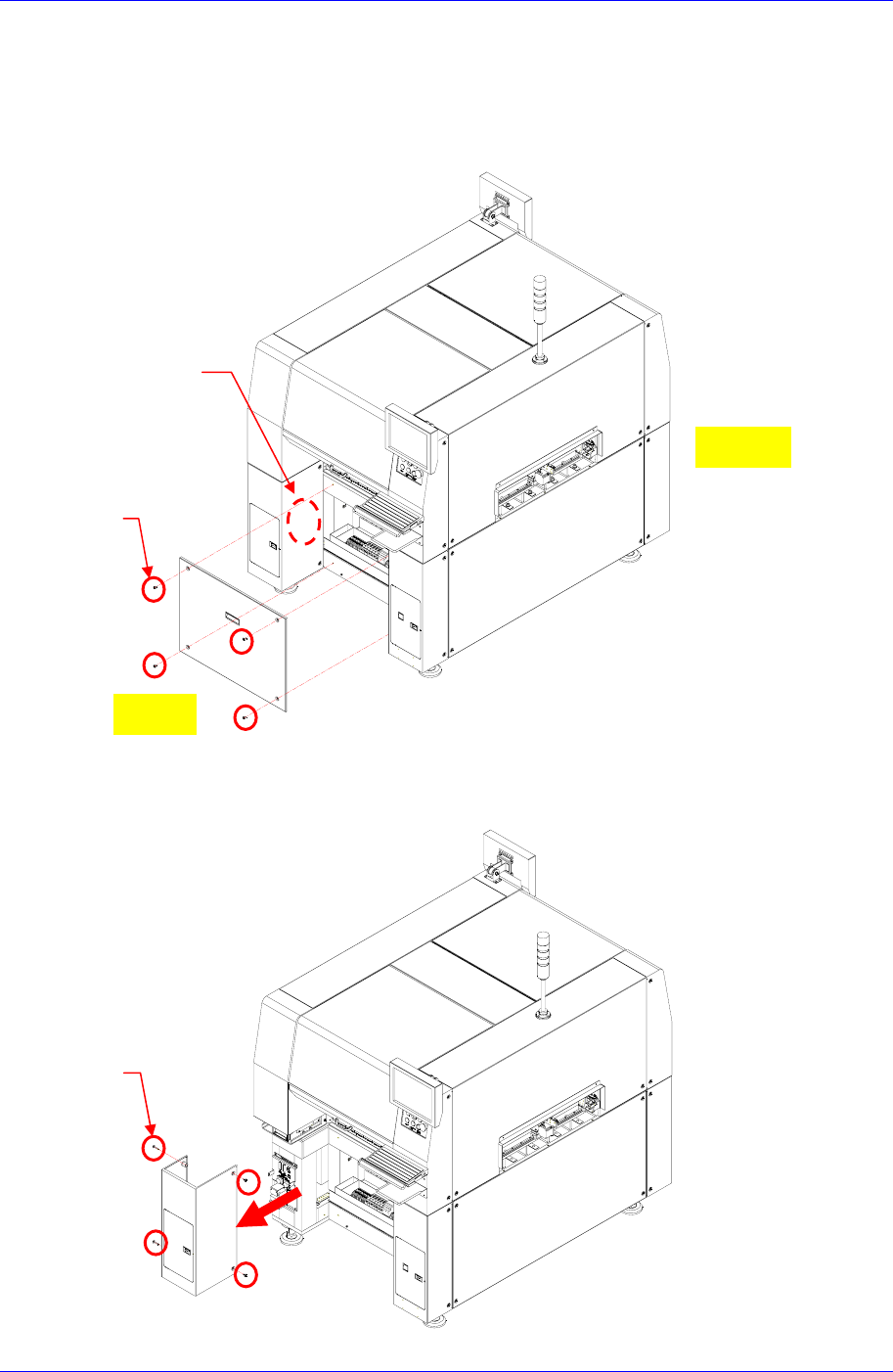 3. 用十字形螺丝刀(+)拧开设备背面左侧Cover的固定螺丝(4-M5*15)后拆卸