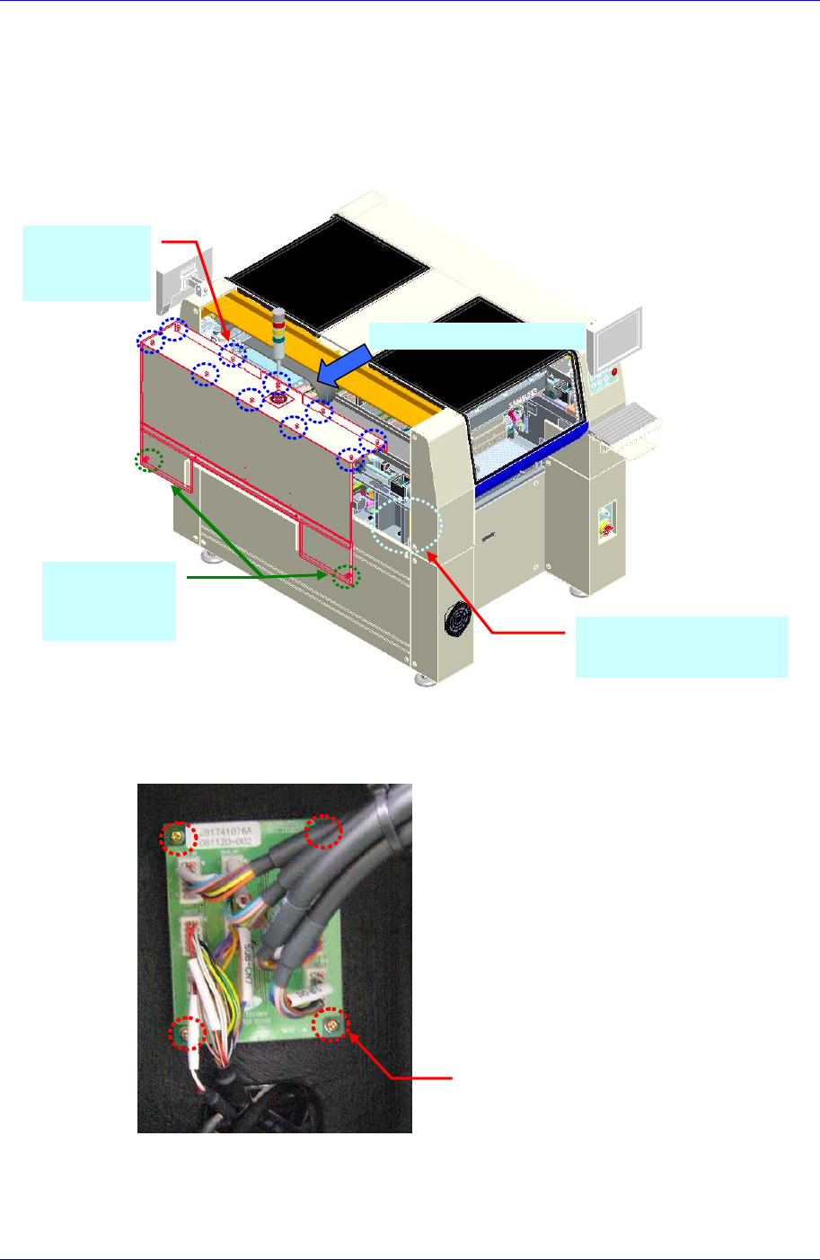 Samsung Component Placer SM431 Service Manual 13-26 4. 拆卸连接在 Board 的电线。 5. 参考下图把 Board 组装到相应的位 置。 6. 更换对应 Board 后按拆卸的逆序进行 组装。 7. 打开设备前面的 Main Switch 后检测 Feeder Base 的输入及输出,确认是否正 常。