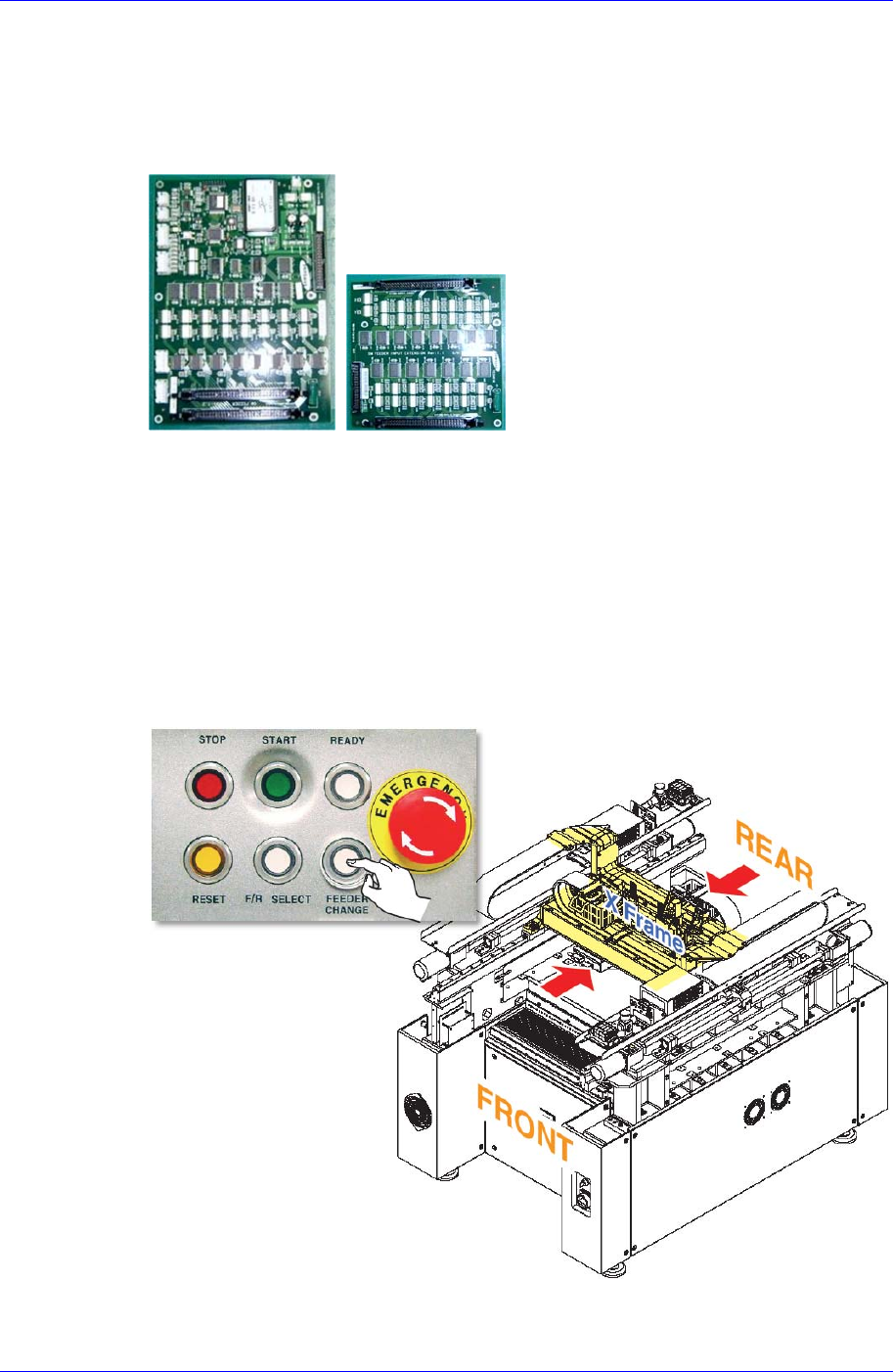 1. 按‘Feeder Change’按钮把Front/Rear X Frame移动到设备的中间位置