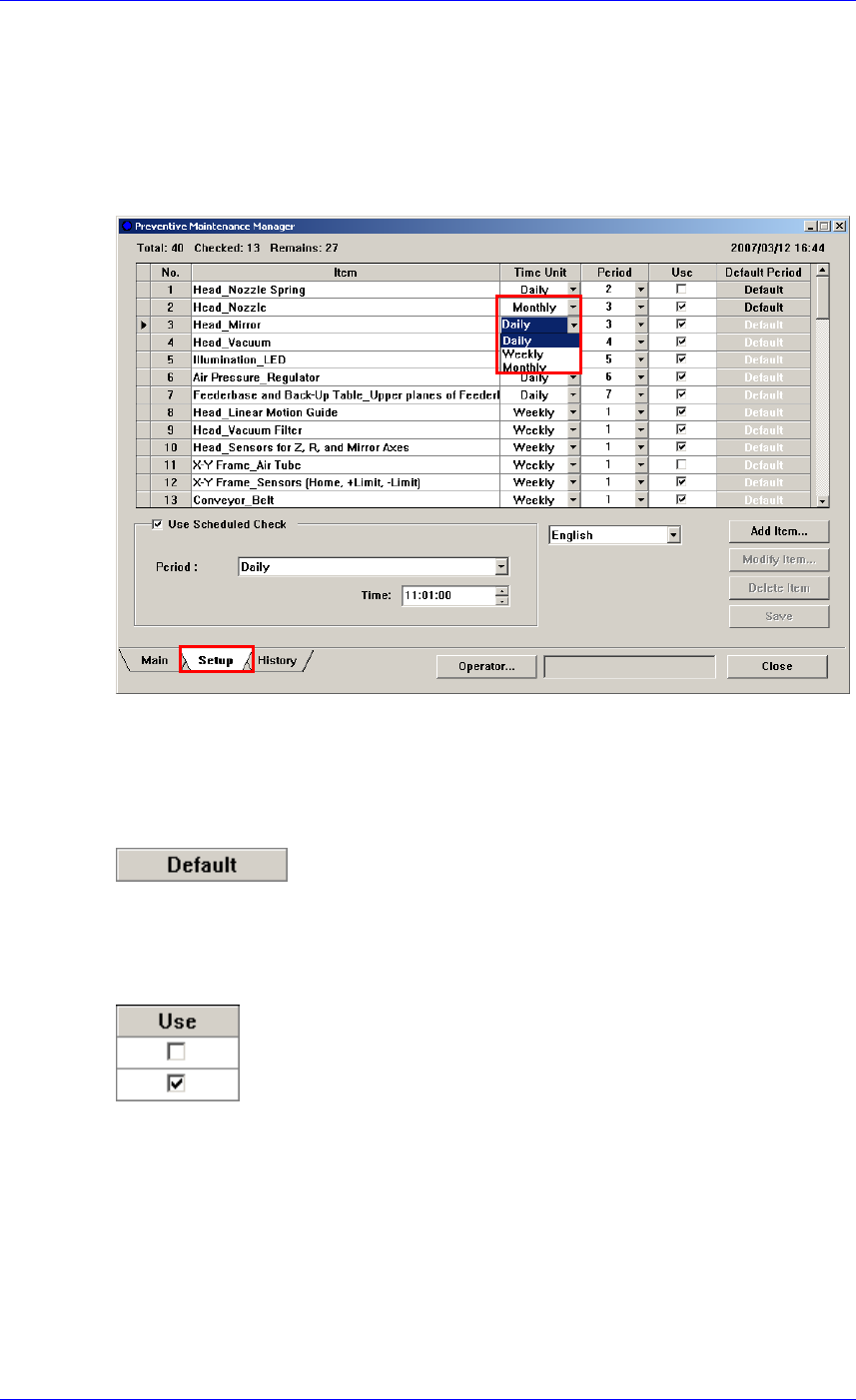 各检查项目的检查周期可在Setup画面中进行更改。