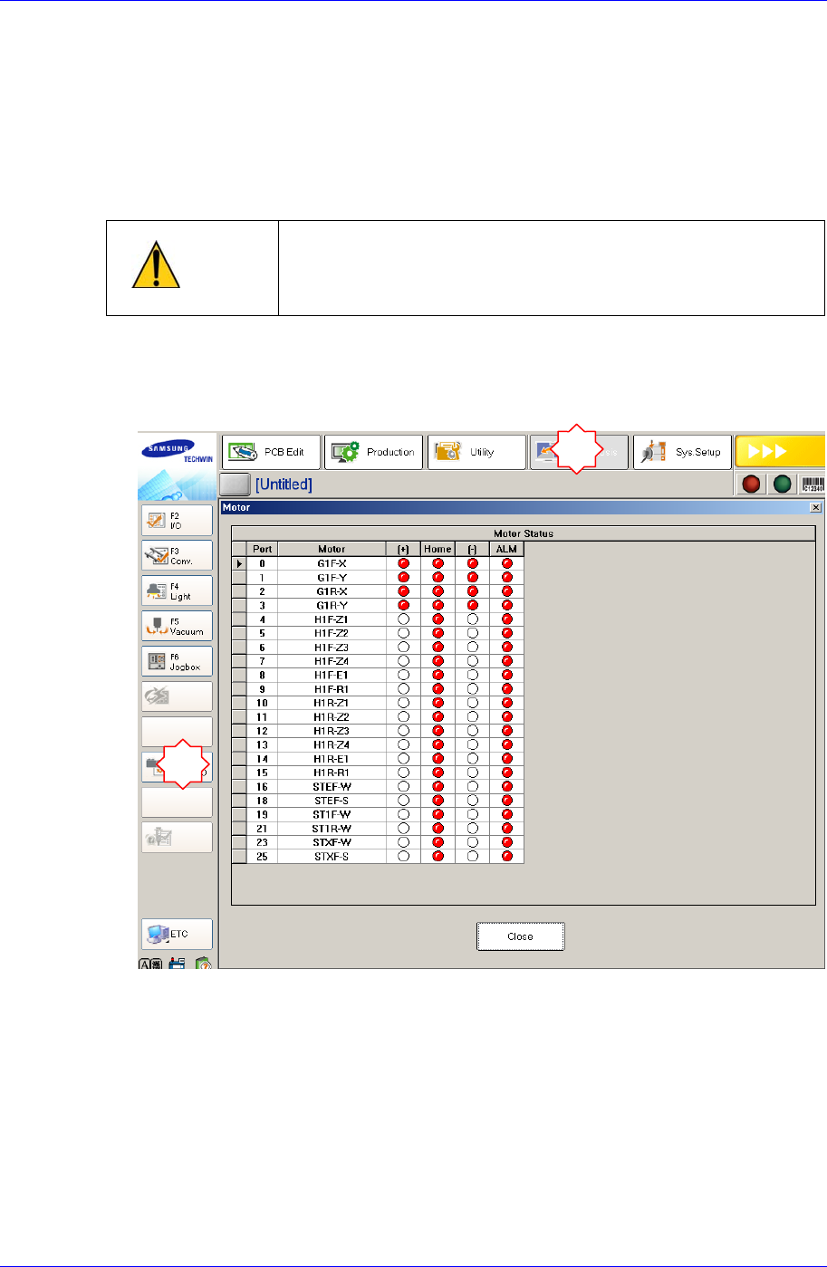 3. 全体程序完成 不按Front OP Panel上的<Ready>按钮的状态下, 要确认Motor的