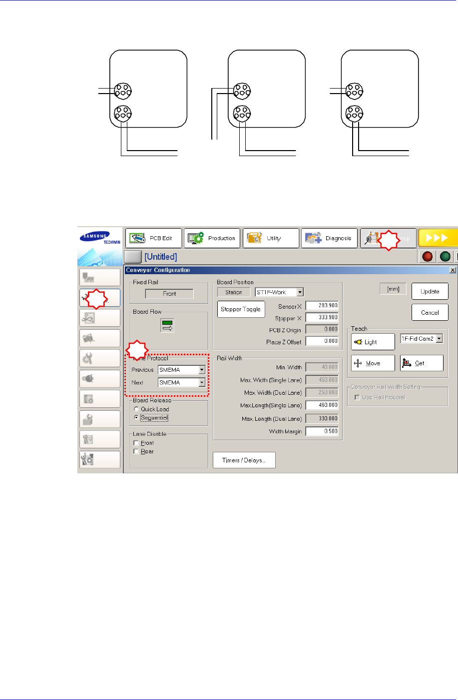 2. 在’Conveyor Utilities’对话框中投入Test PCB,确认各Station的基板检查传感器及