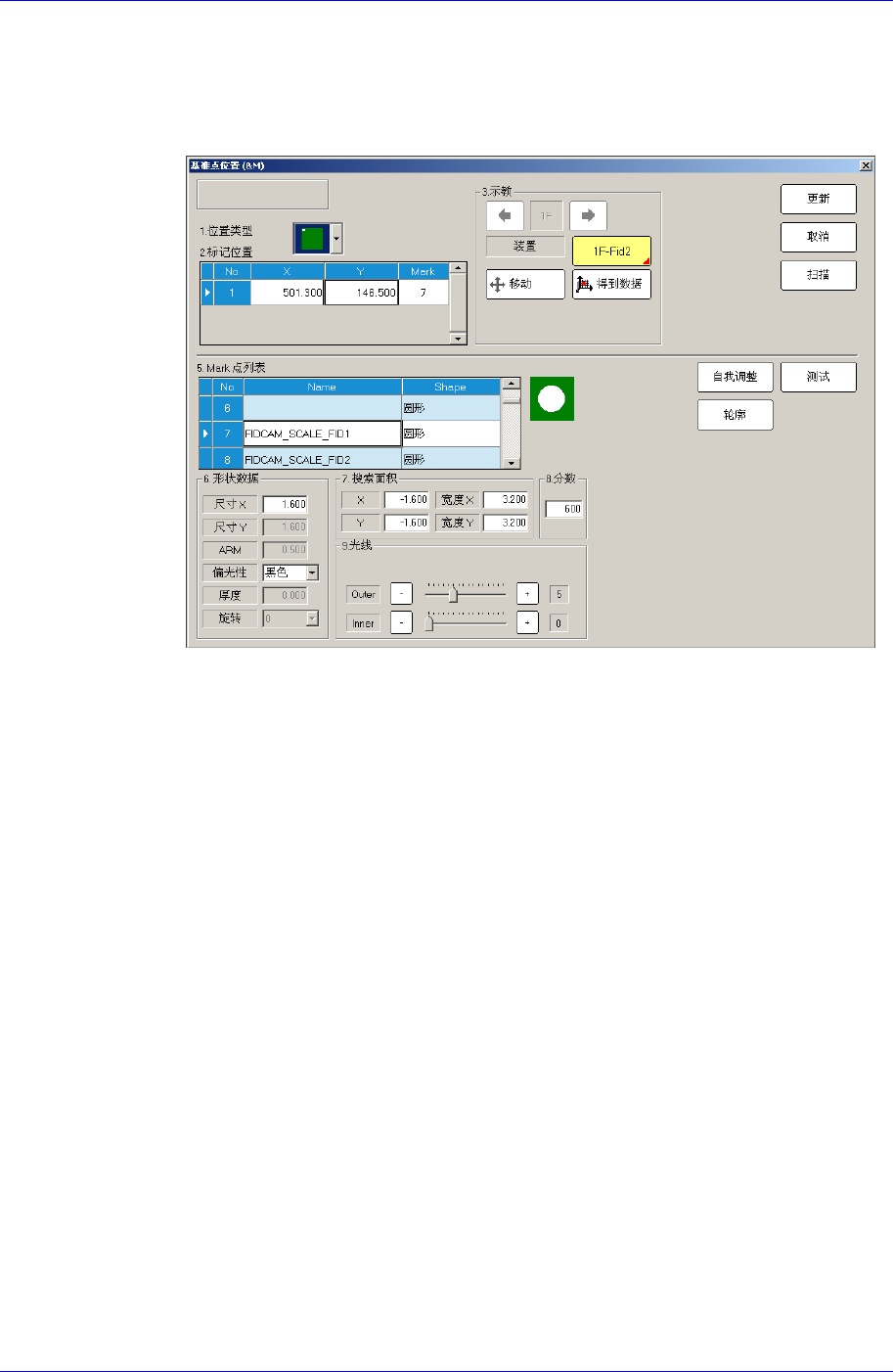 这时,基准相机会移动到相应的位置。Gantry 1时Mark ID用 "7"号, Gantry
